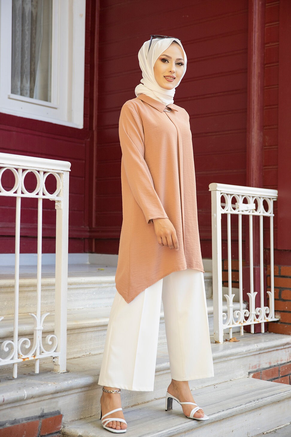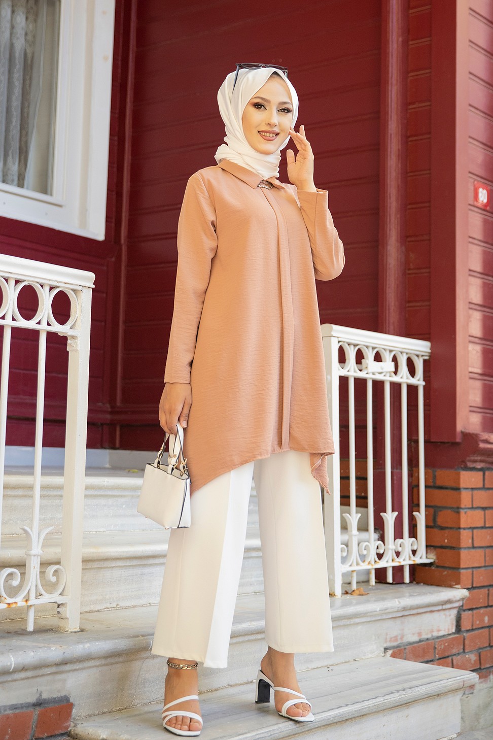 Tunique-chemise style classique pour femme (Tenue hijab nouveauté) - Couleur beige - REF. 36001 (24.90 €)