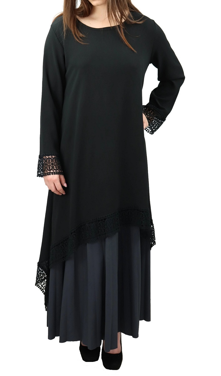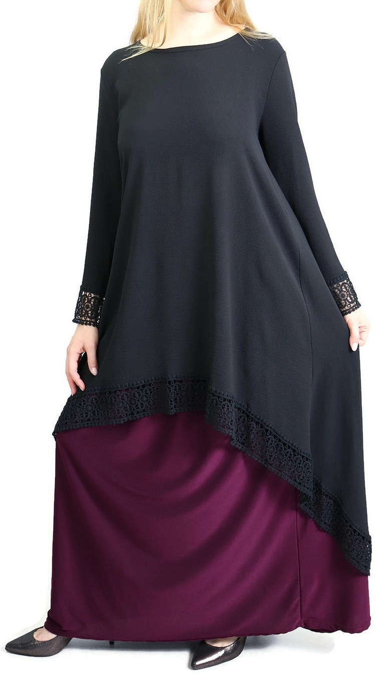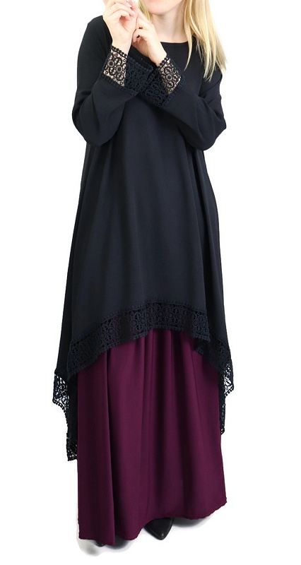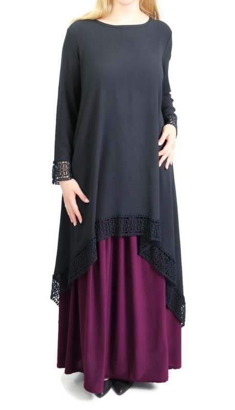 Tunique ample évasée avec dentelle pour femme - Couleur Noir Vetement & Accessoire