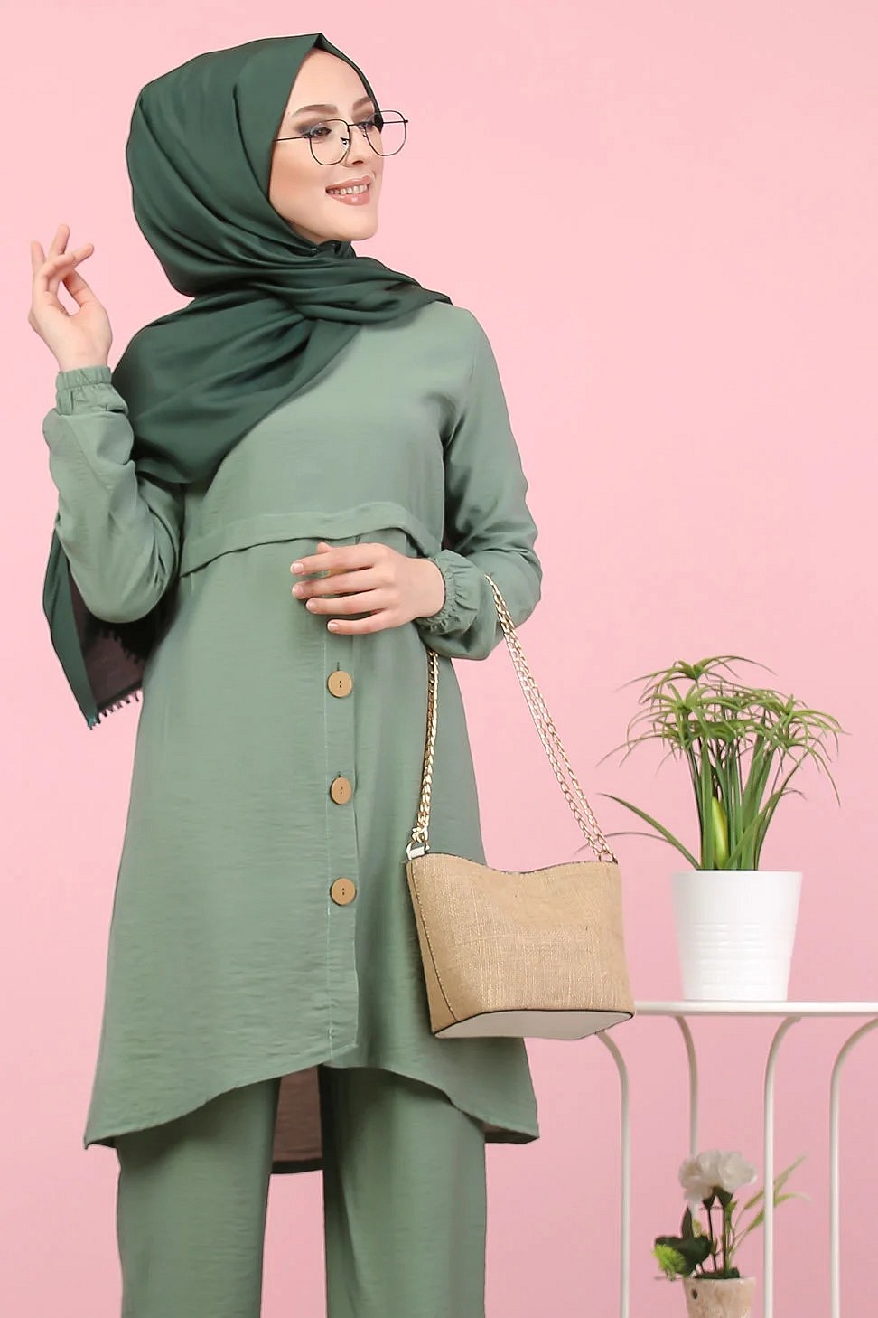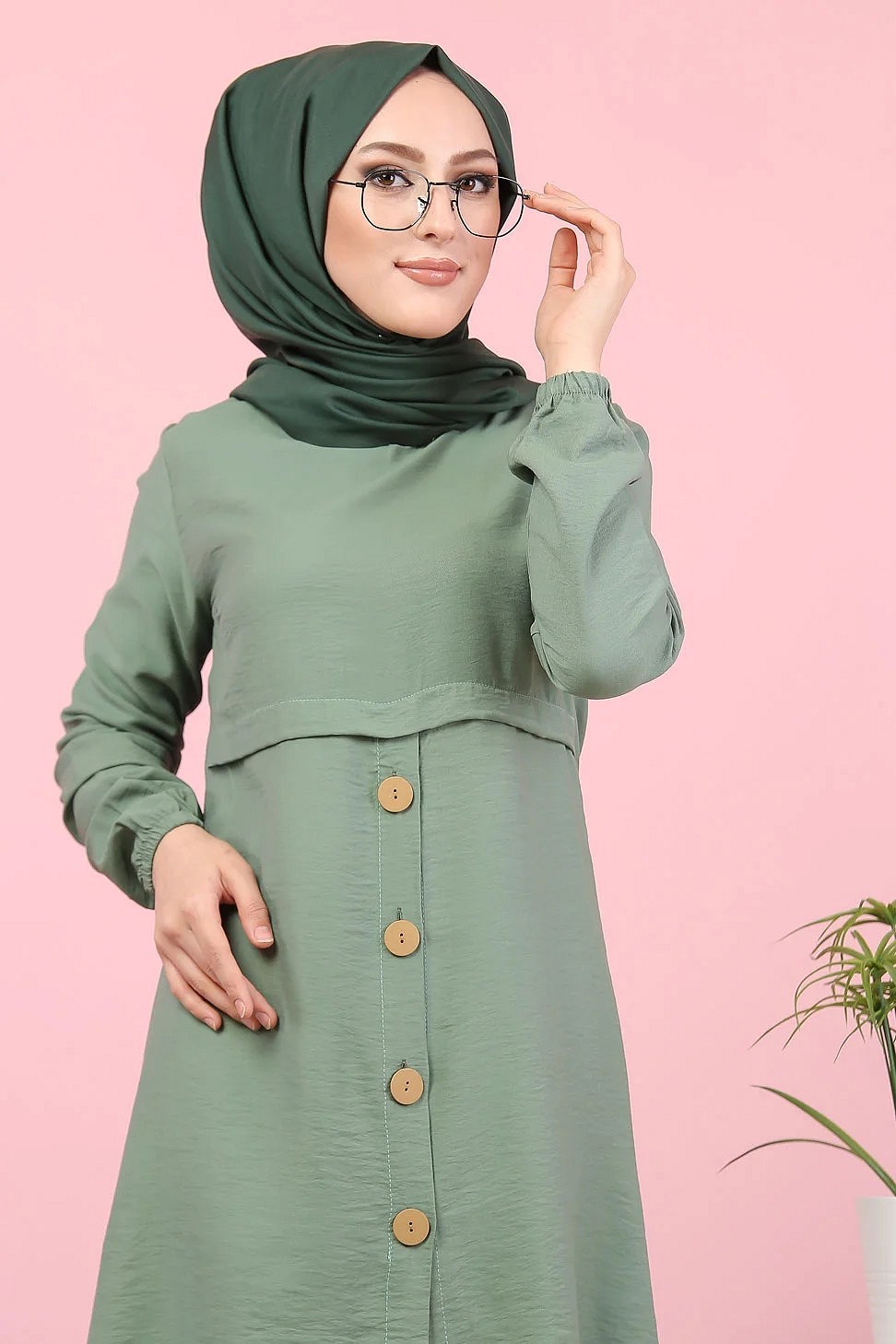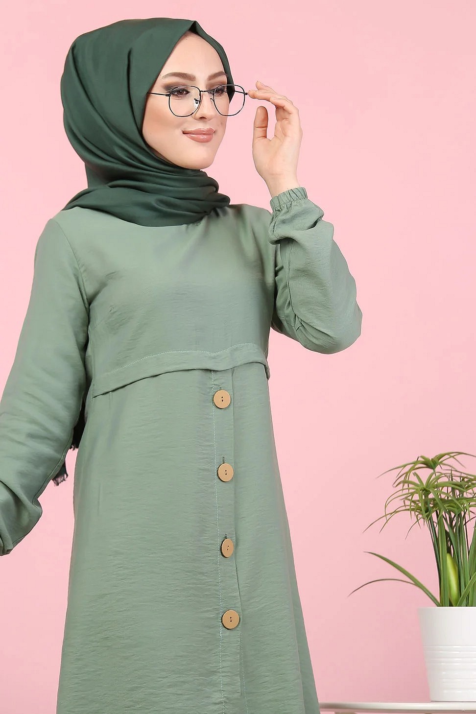 Tunique ample evasee boutonnee pour femme (Mode Musulmane) - Couleur Kaki