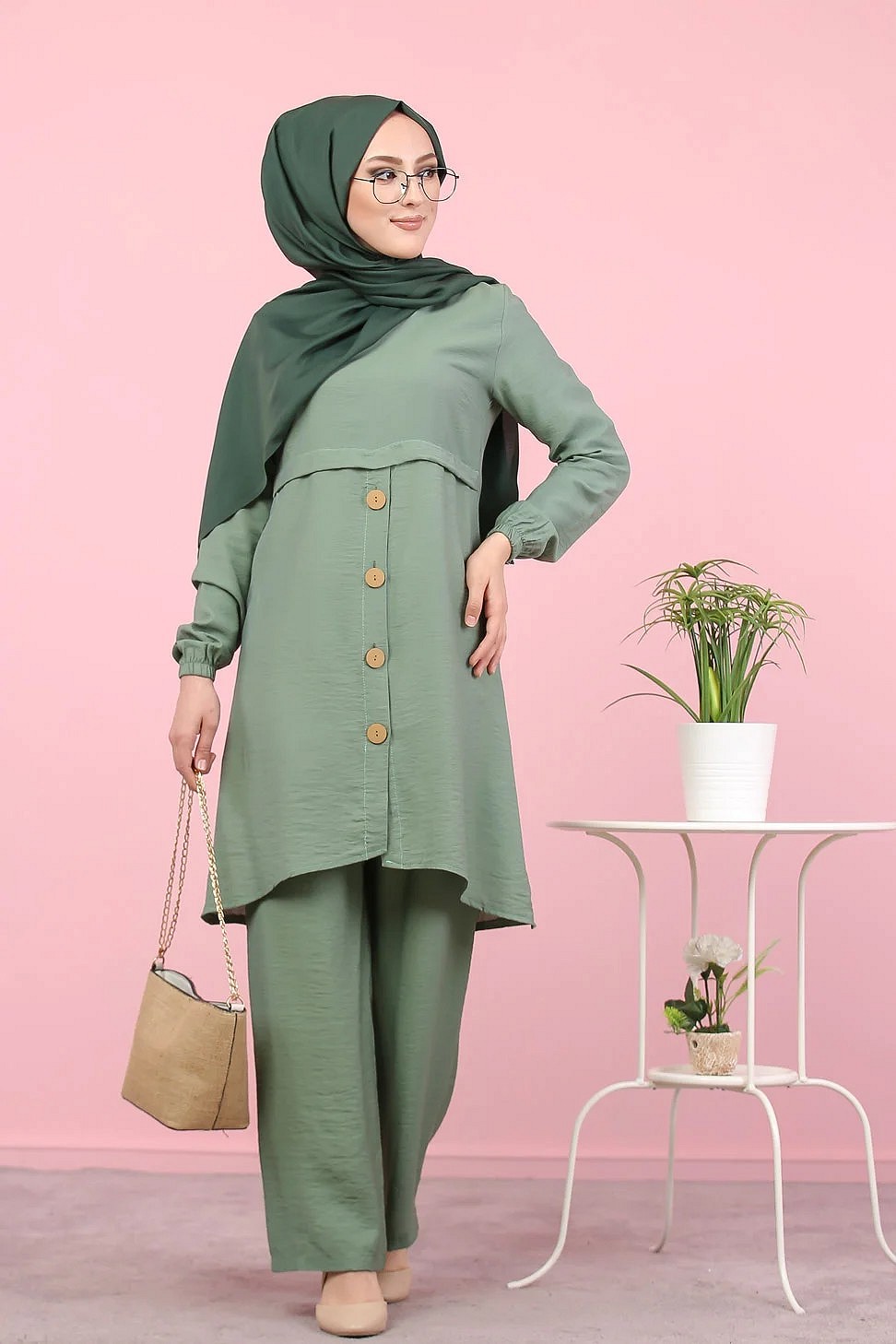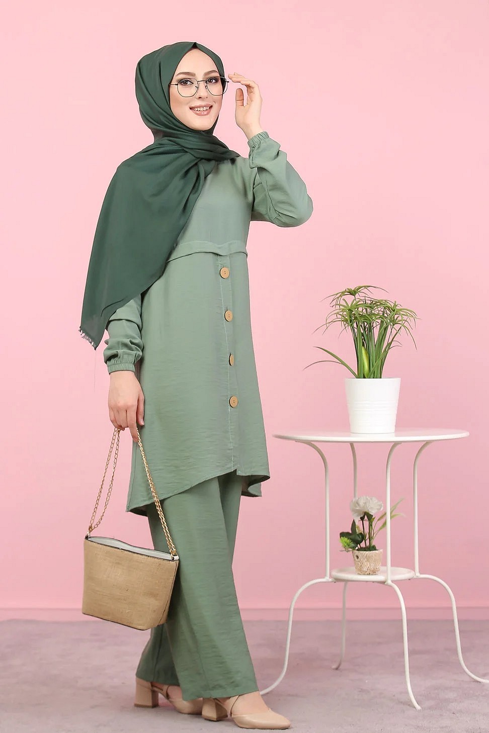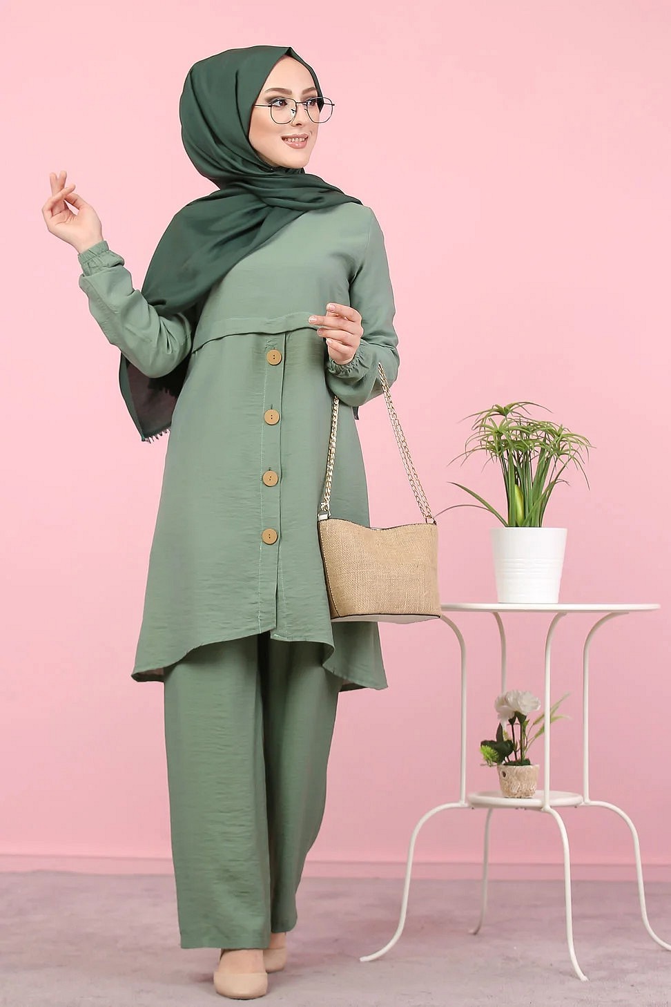 Tunique ample evasee boutonnee pour femme (Mode Musulmane) - Couleur Kaki
