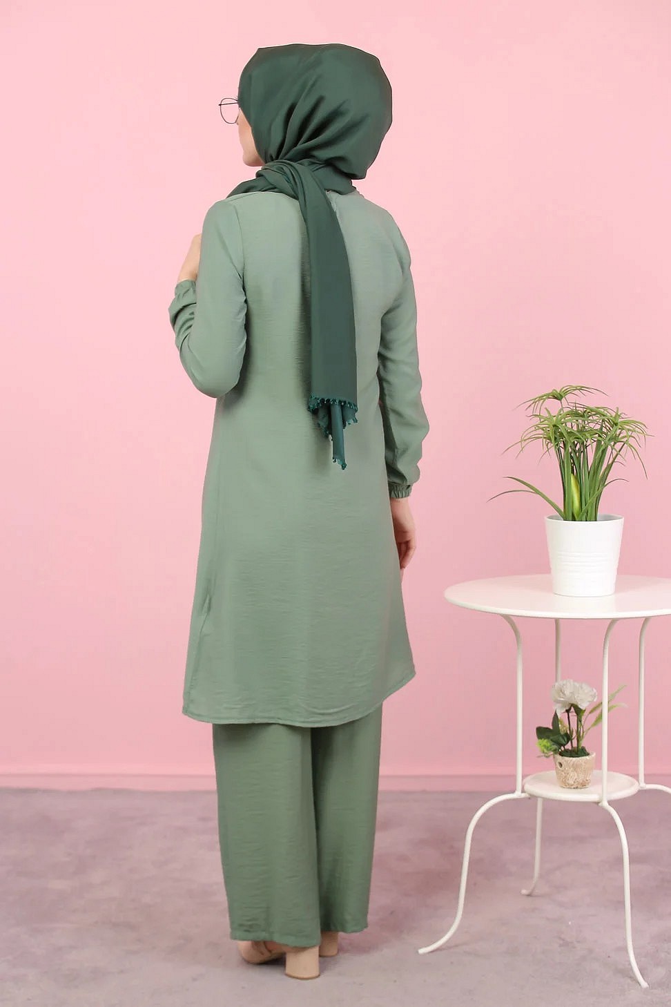 Chemise longue boutonnée type tunique (Vetement pudique femme voilée) - Couleur kaki - REF. 33876 (25.00 €)