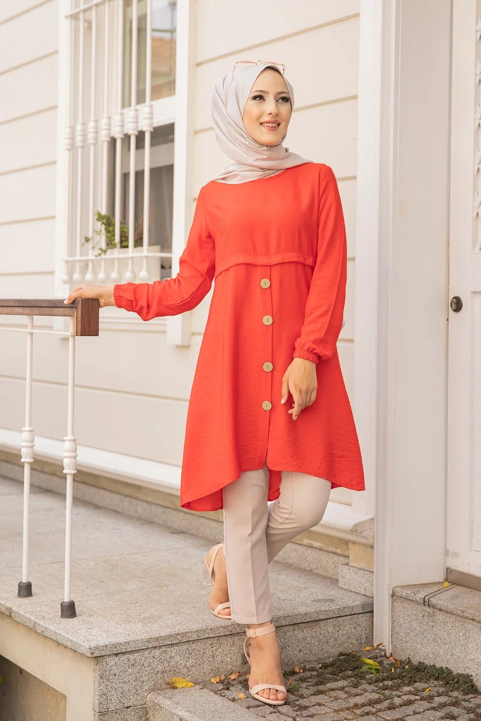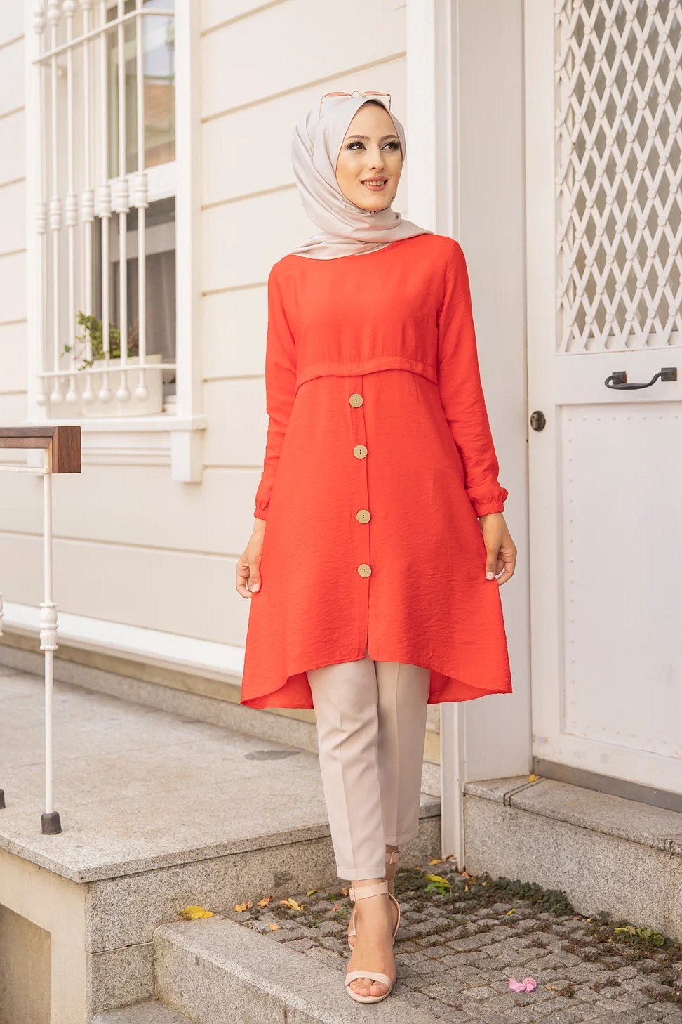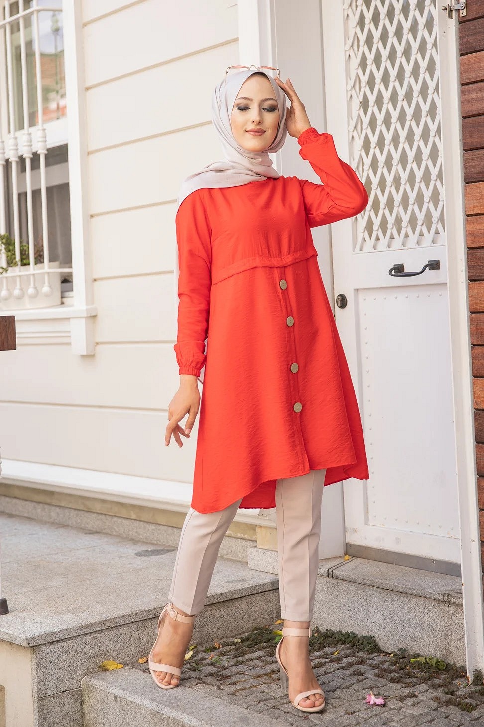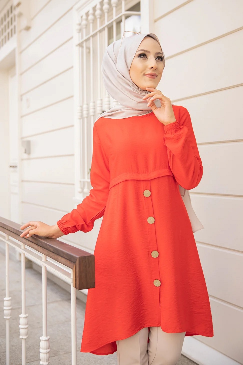Tunique ample evasee boutonnee pour femme (Nouveaute Modest Fashion) - Couleur Grenade