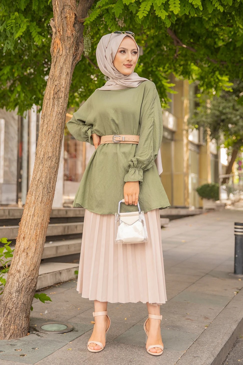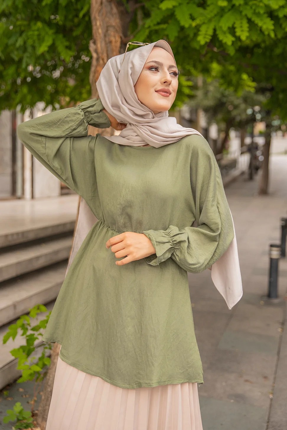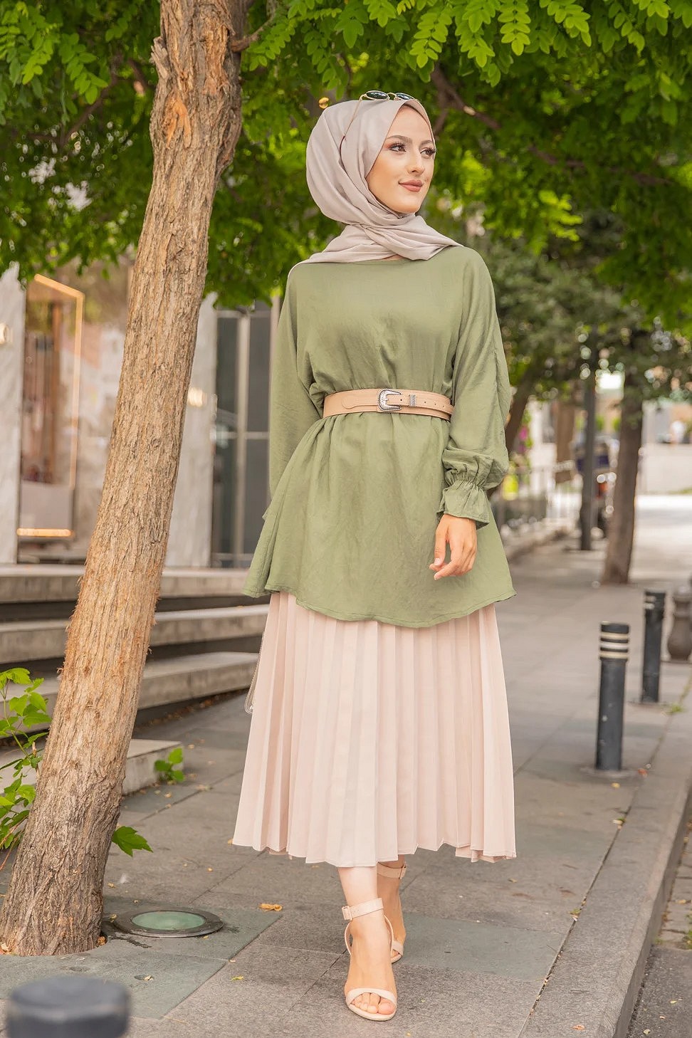 Chemise à froufrou (Vetement femme voilée moderne) - Couleur kaki - REF. 34573 (24.90 €)