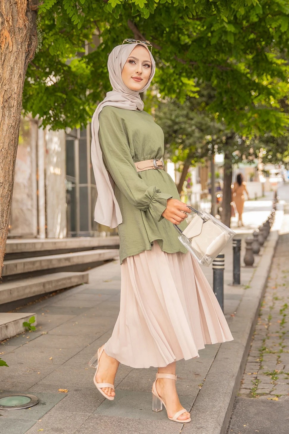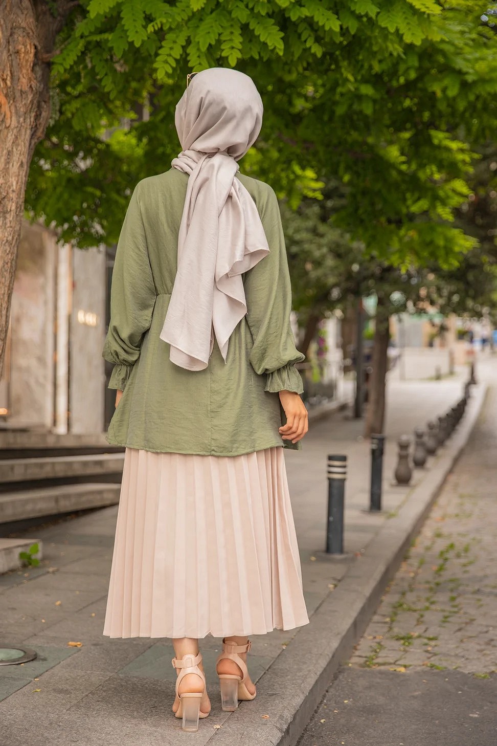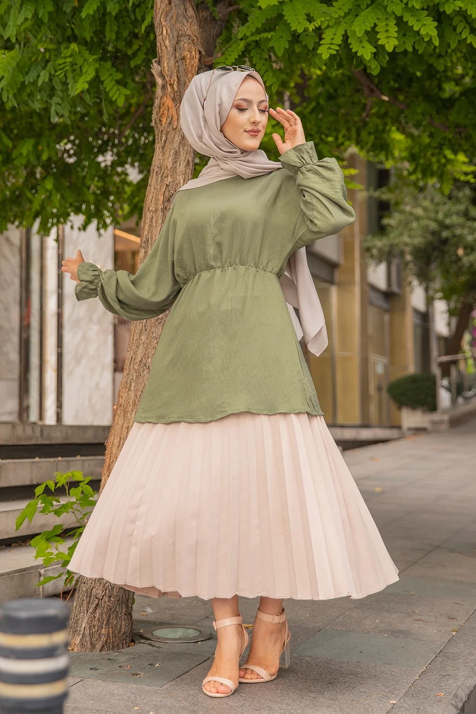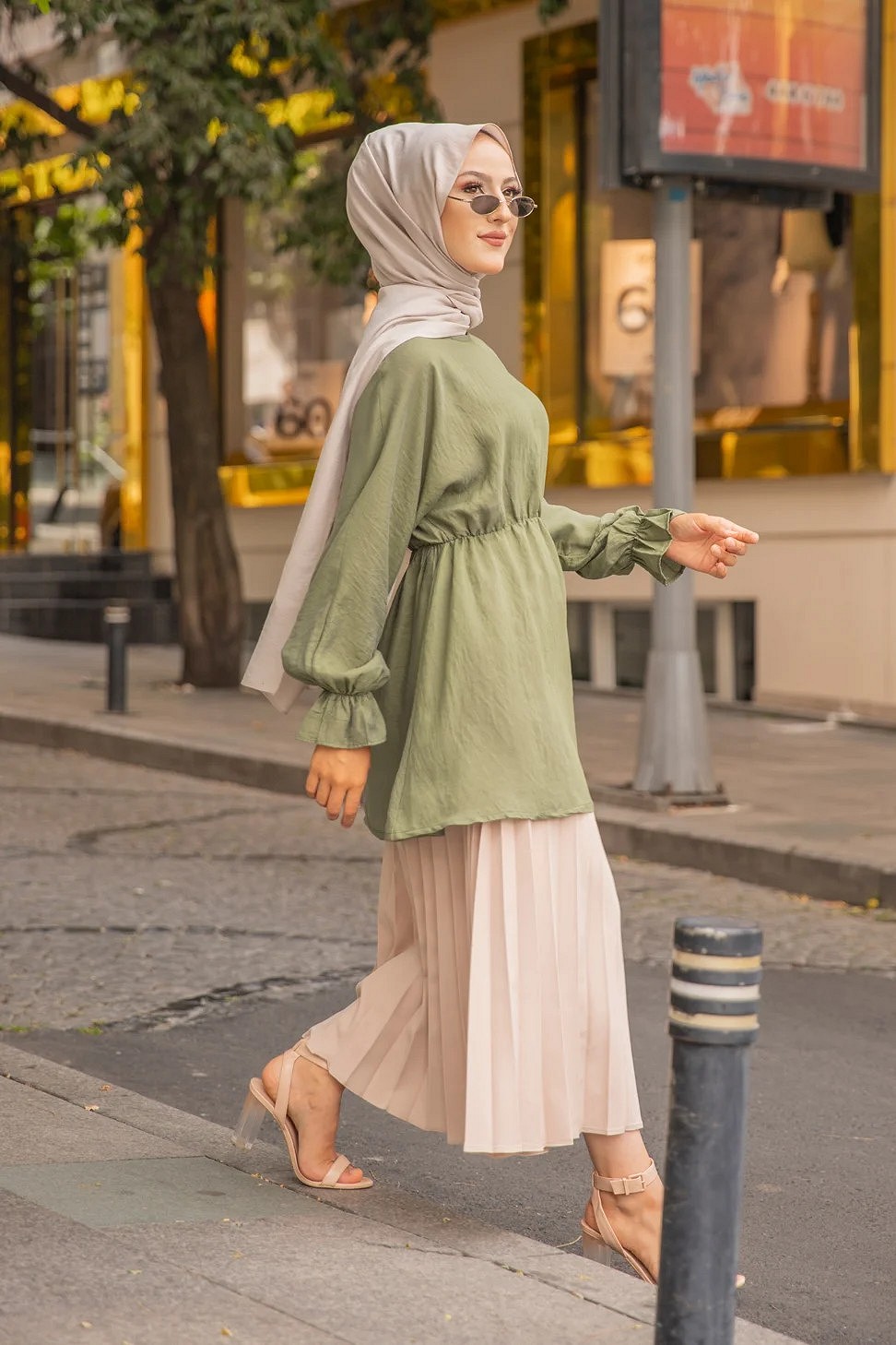 Chemise à froufrou (Vetement femme voilée moderne) - Couleur kaki - REF. 34573 (24.90 €)