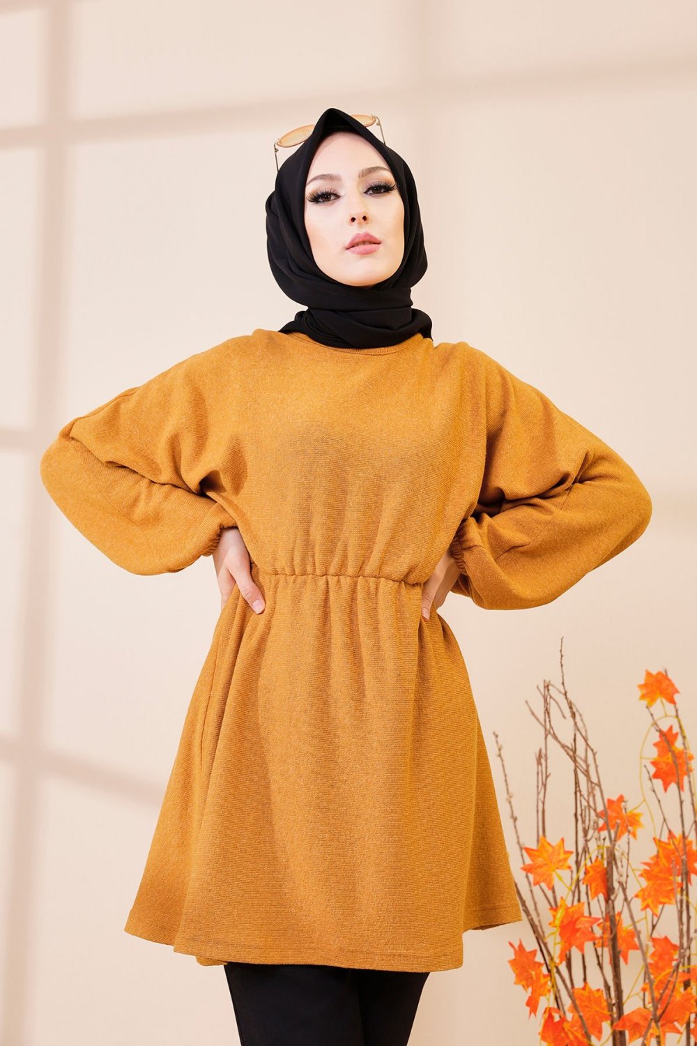 Robe Gilet pour femme (Tenue Hijab Chic Saison Automne-Hiver) - Couleur moutarde - REF. 35667 (28.00 €) - En Promotion à 19.90 €
