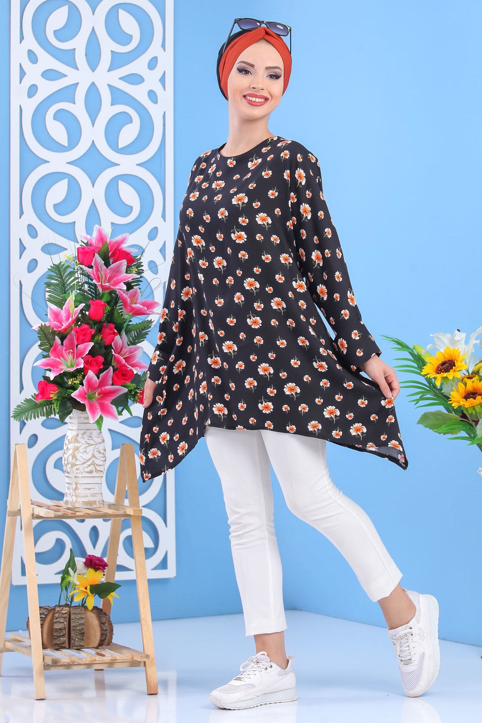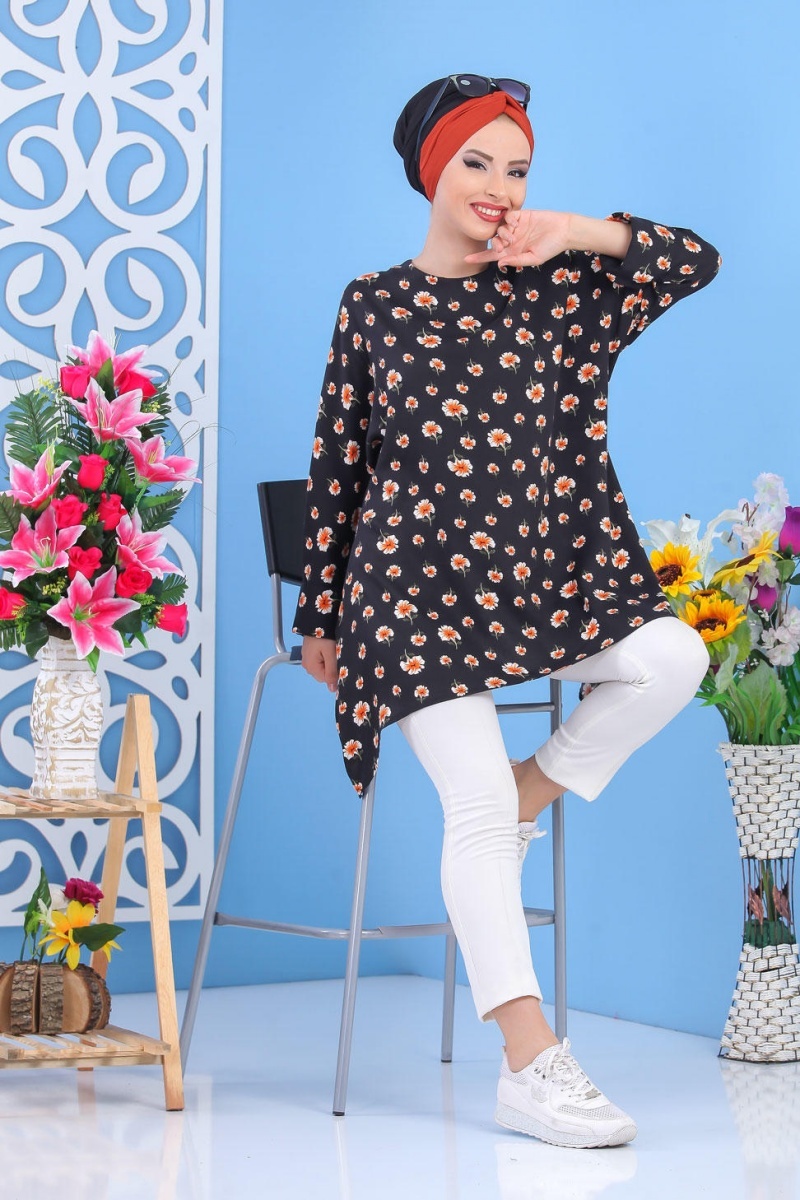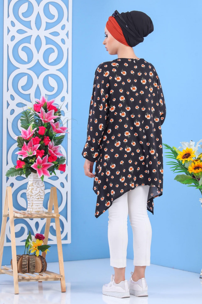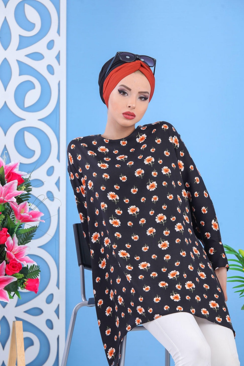 Tunique ample pour femme à motif floral - Couleur noire Vetement & Accessoire