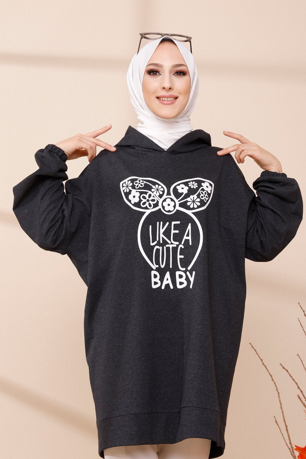 Sweat à capuche imprimé "Like a cute baby".