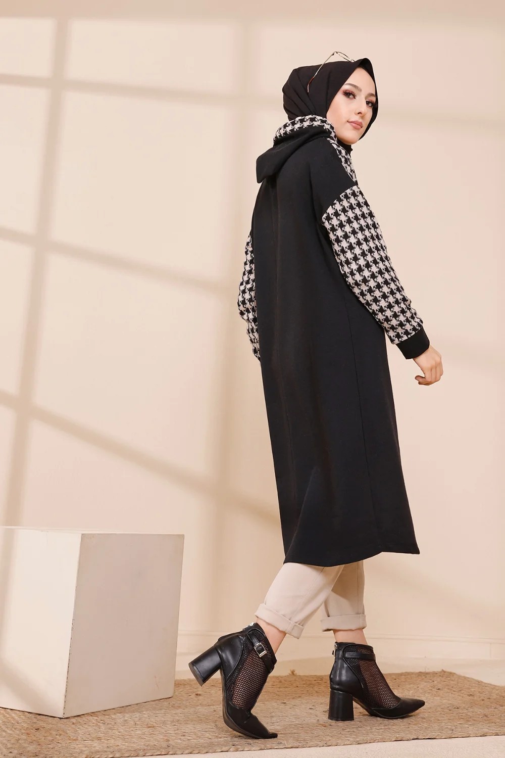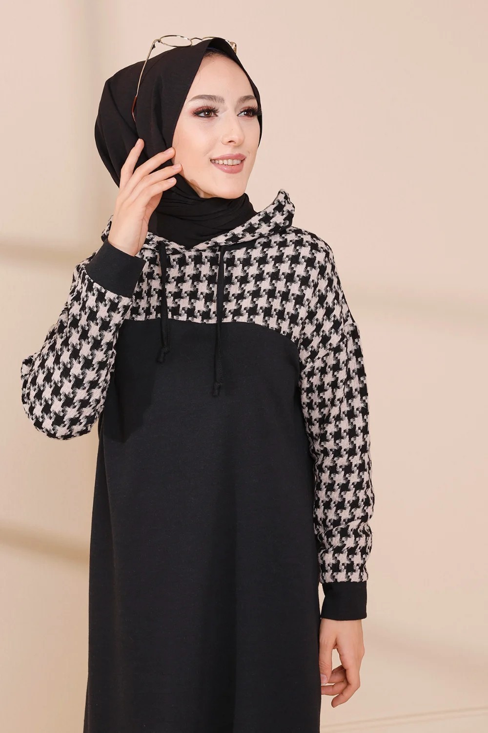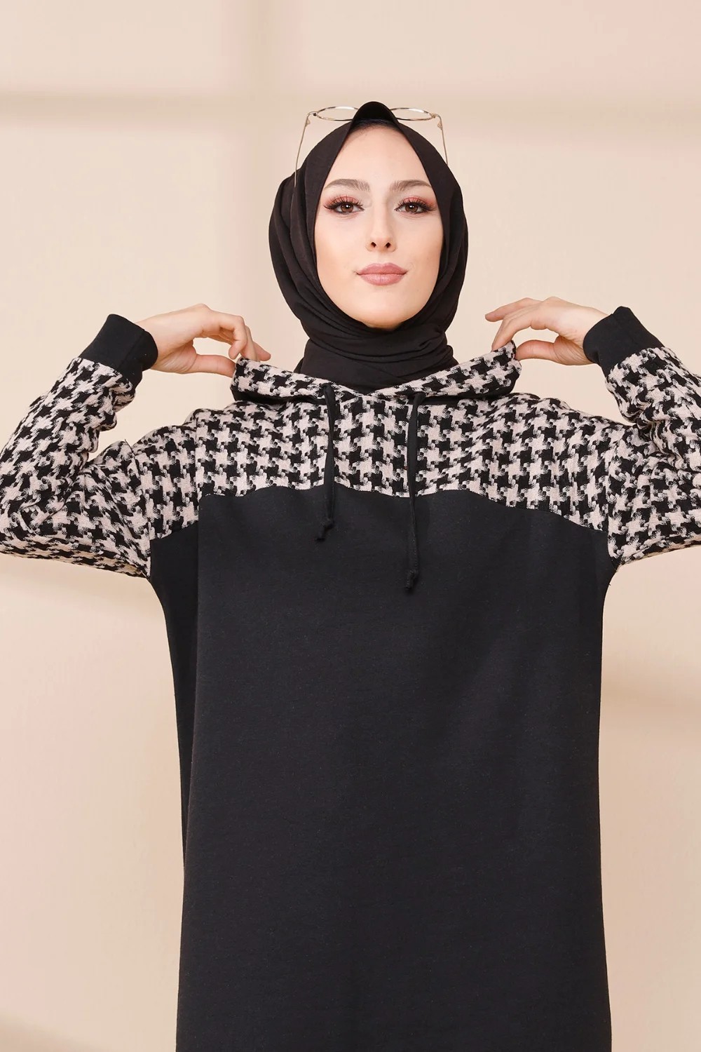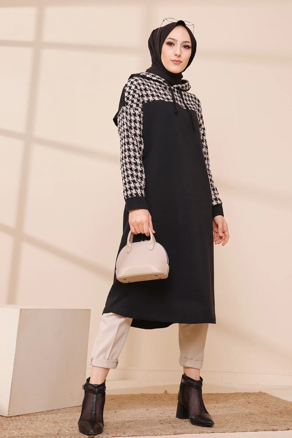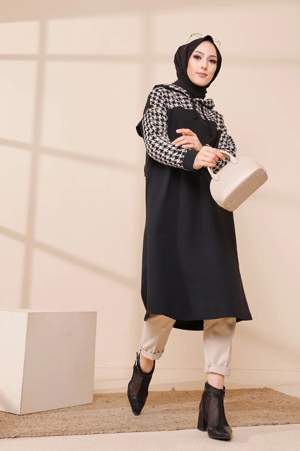 Tunique avec strass et capuche (Vêtement décontracté moderne pour hijab) - Couleur noir - REF. 35956 (19.90 €)