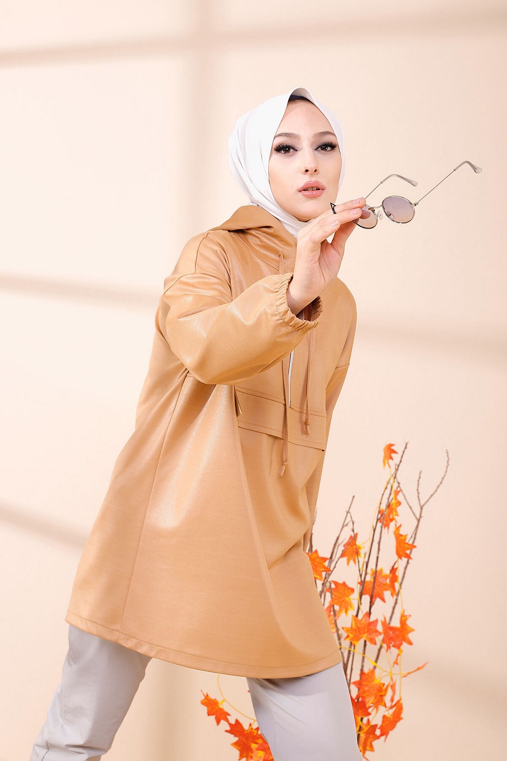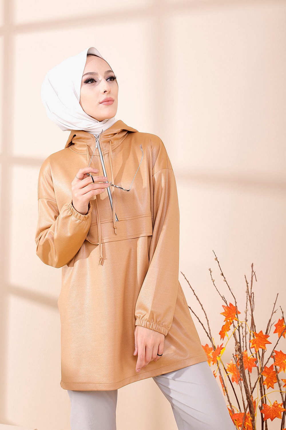 Tunique avec capuche (Boutique en ligne Hijab moderne pour femme) - Couleur brique - REF. 38317 (19.90 €) - En Promotion à 16.90 €