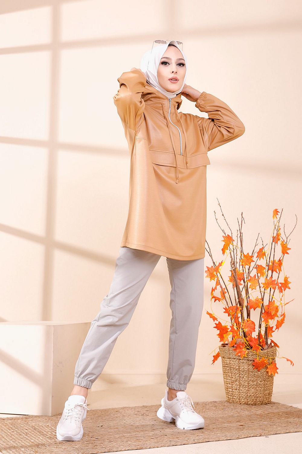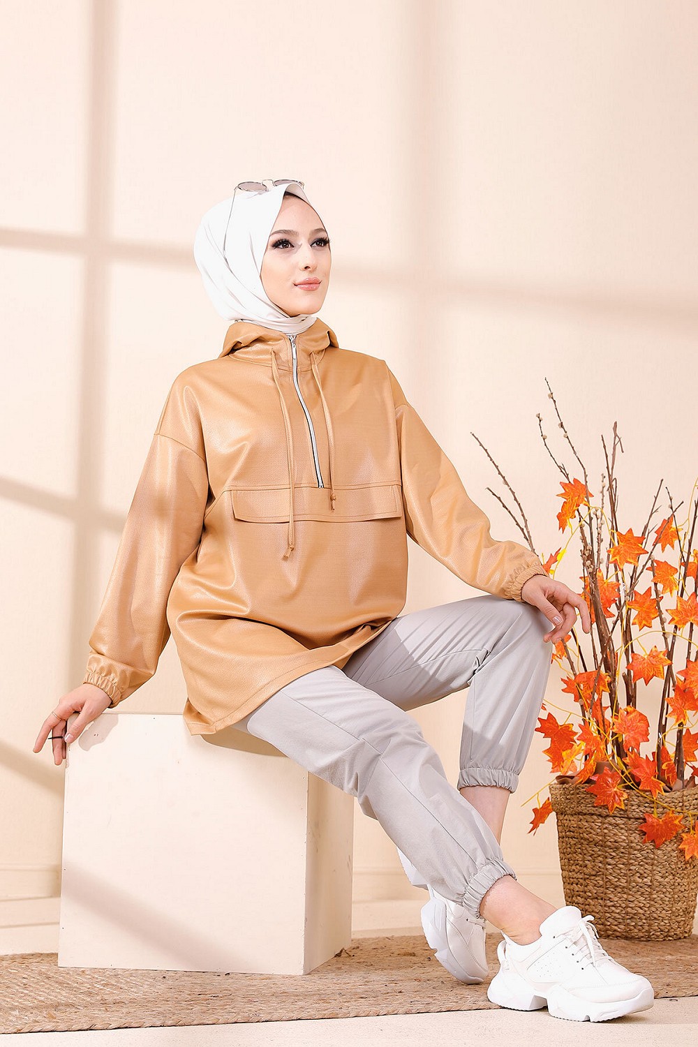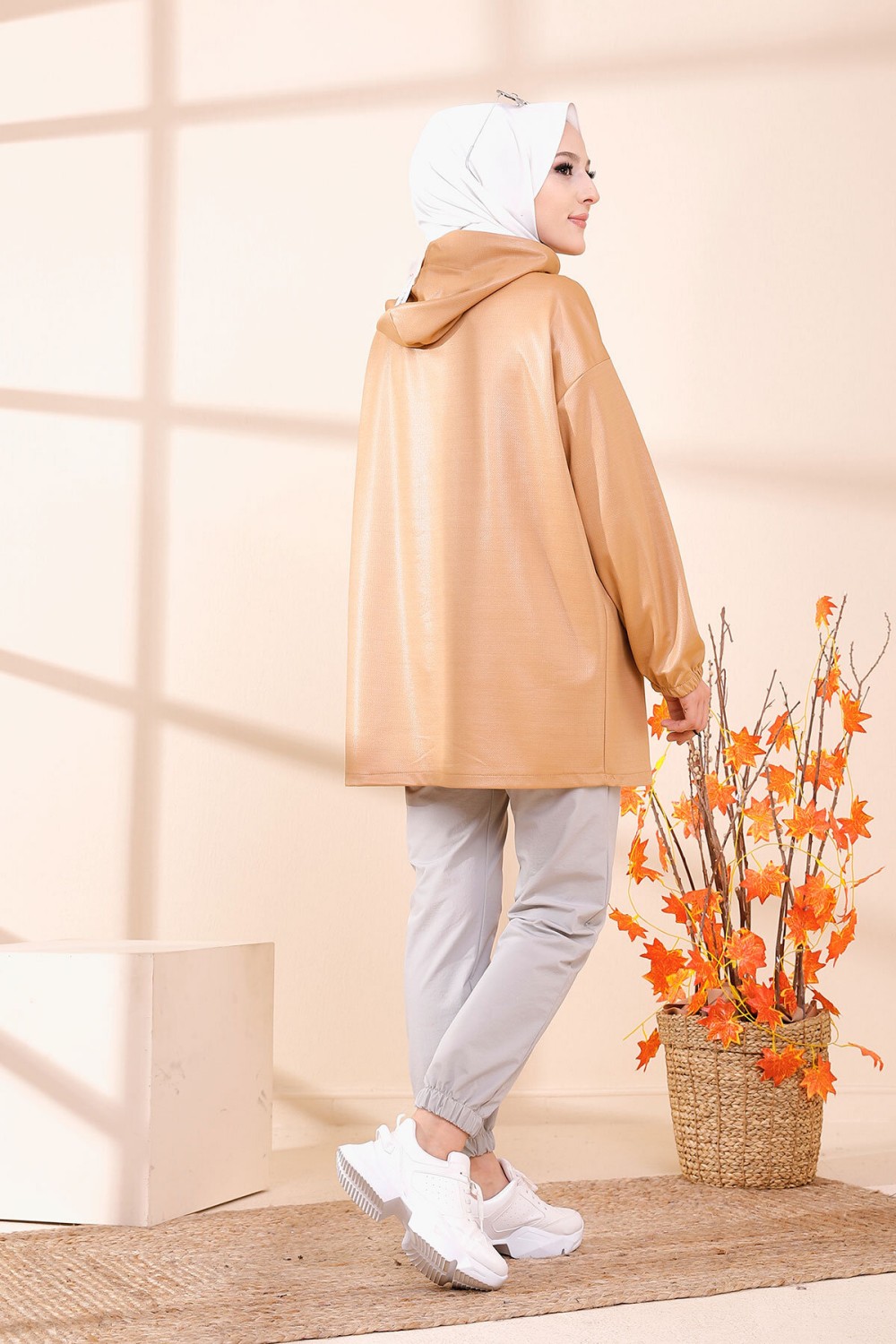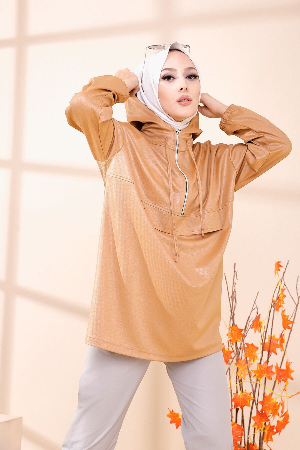 Tunique type sweat-shirt à capuche (Vêtement décontracté et sport pour hijab) - Couleur kaki - REF. 35430 (22.00 €) - En Promotion à 16.90 €