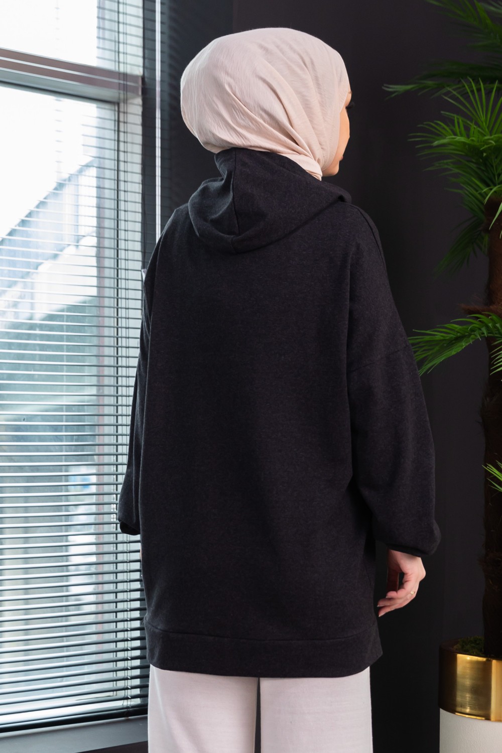 Tunique décontractée avec capuche (Vetement moderne femme voilée) - Couleur anthracite - REF. 35559 (23.00 €)