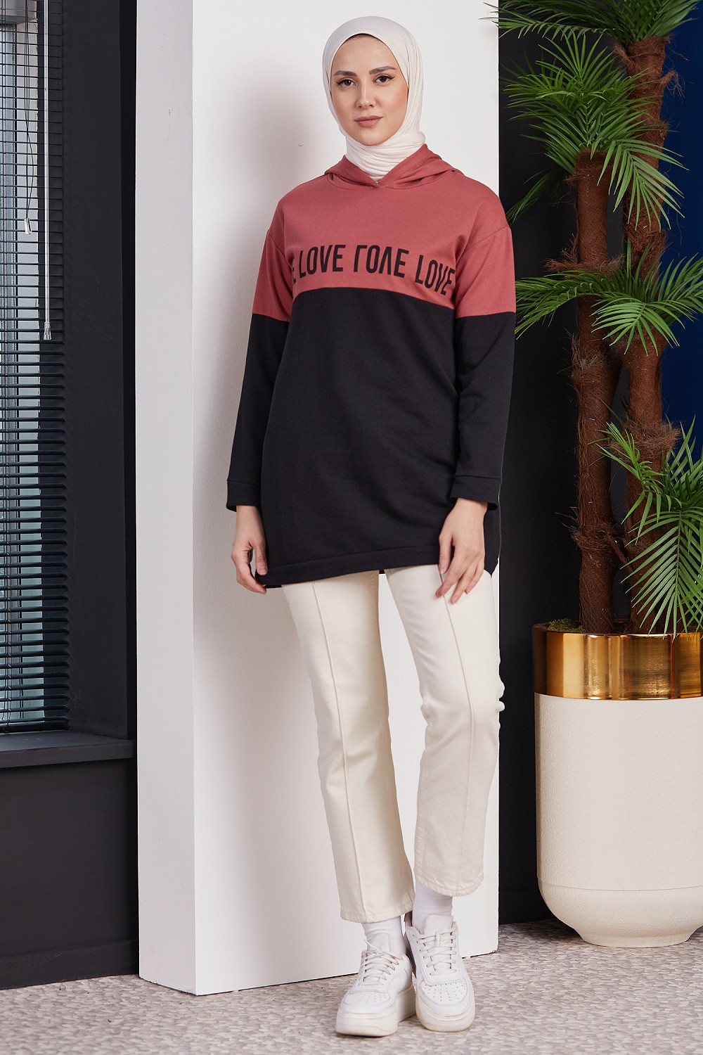 Tunique avec capuche pour femme (Sweat-shirt moderne avec inscription Love) - Couleur vieux rose Vetement & Accessoire
