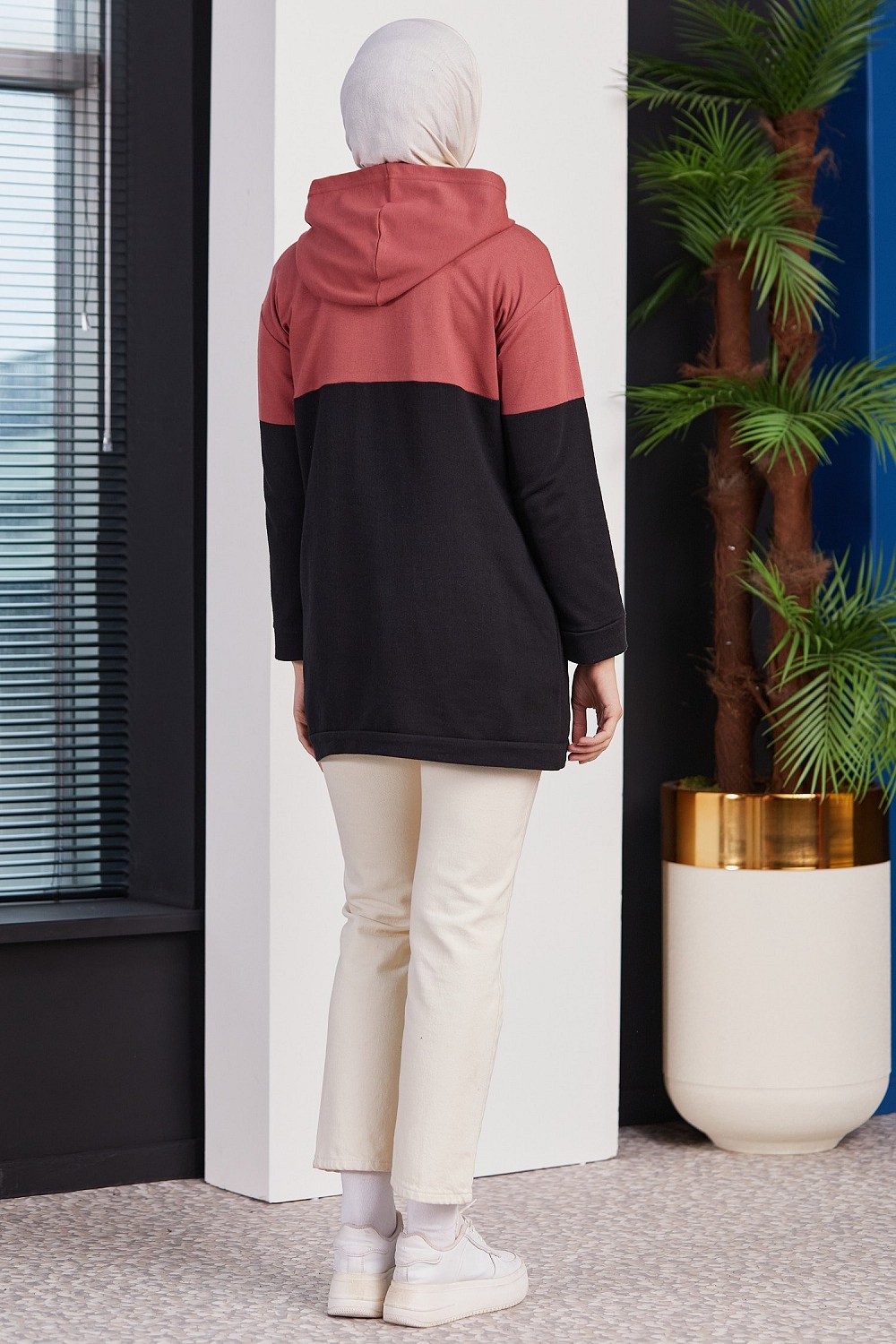 Tunique longue à rayures avec capuche (Vêtement décontracté et sport pour hijab) - Couleur brique - REF. 35740 (19.00 €)