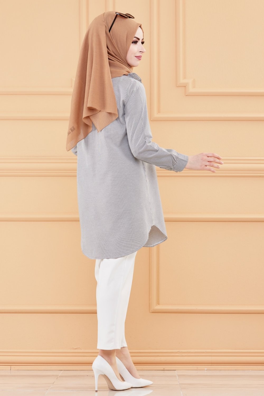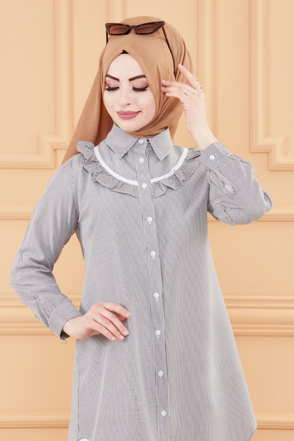 Tunique longue - Chemise boutonnée ample (Vêtement femme voilée) - Couleur tabac - REF. 35916 (29.00 €)