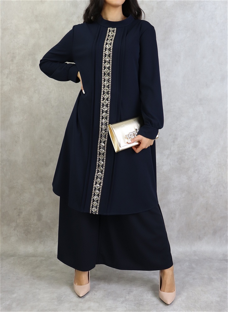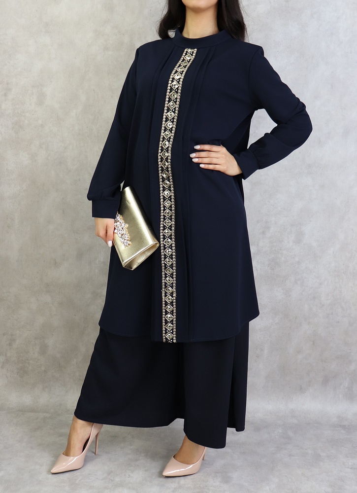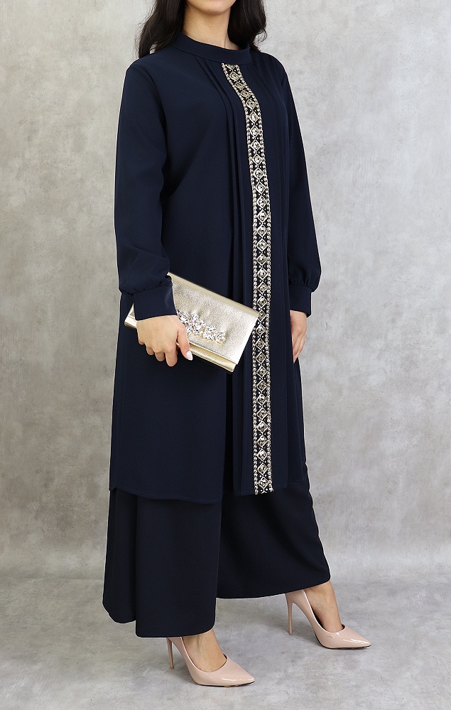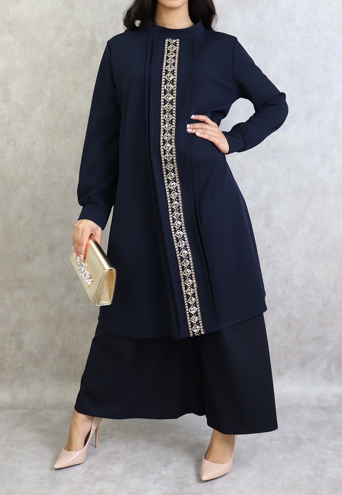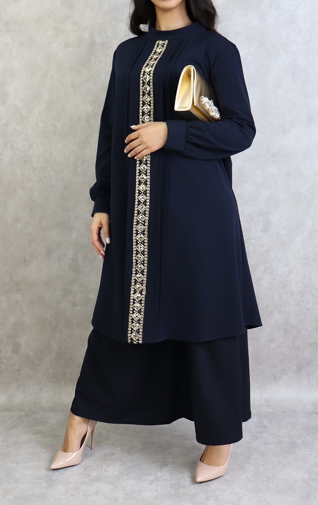 Tunique en dentelle à la taille (Vêtement femme voilée chic) - Couleur bleu pétrole - REF. 36383 (28.00 €)