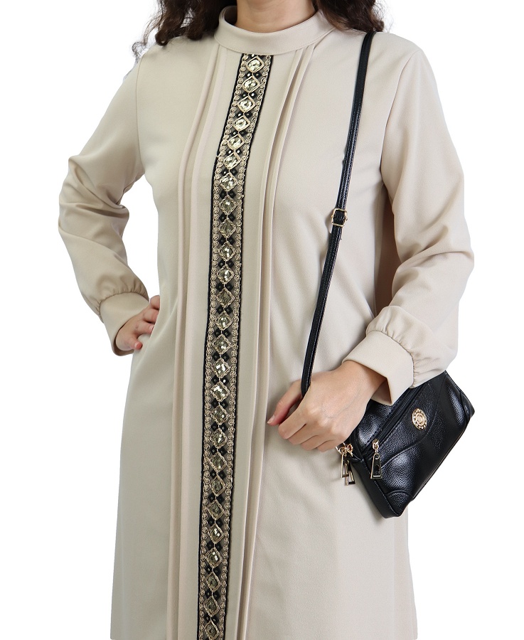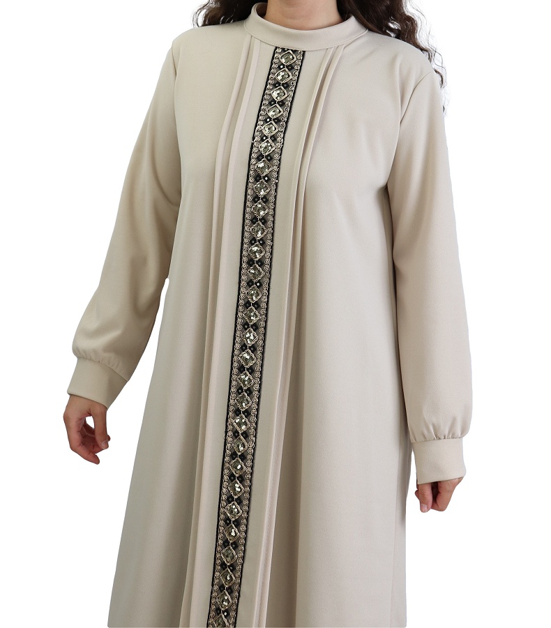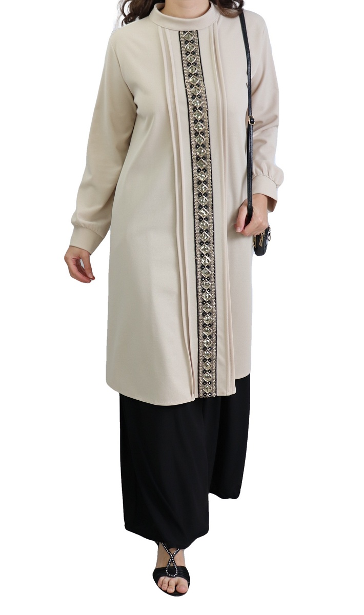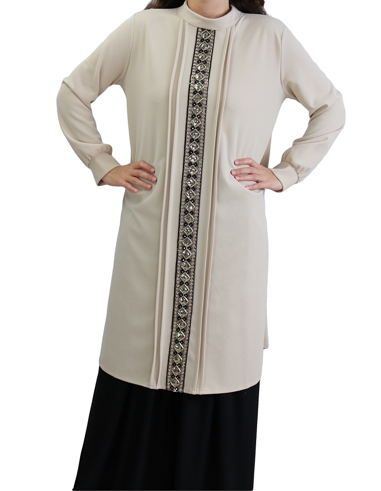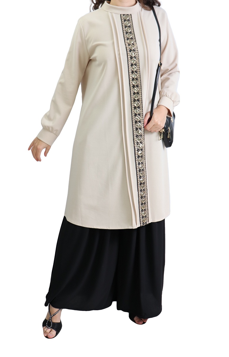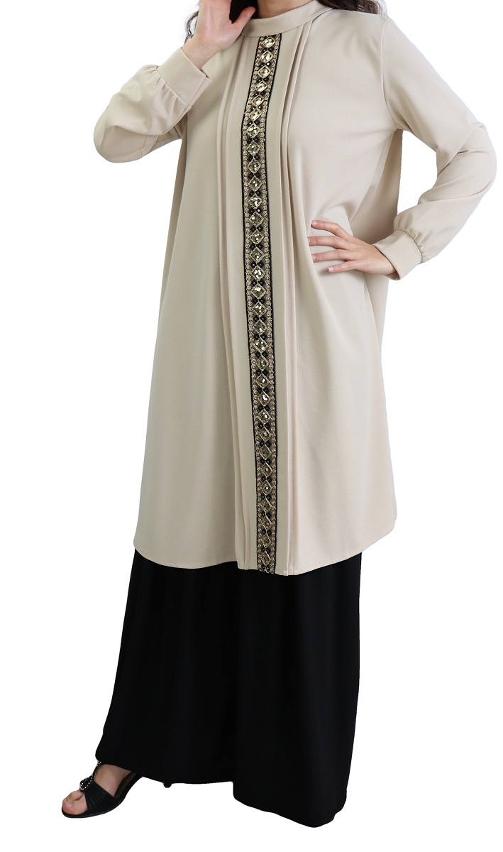 Tunique ample coupe originale (Vetement Mastour pour femme voilée) - Couleur Beige foncé - REF. 33942 (19.90 €)