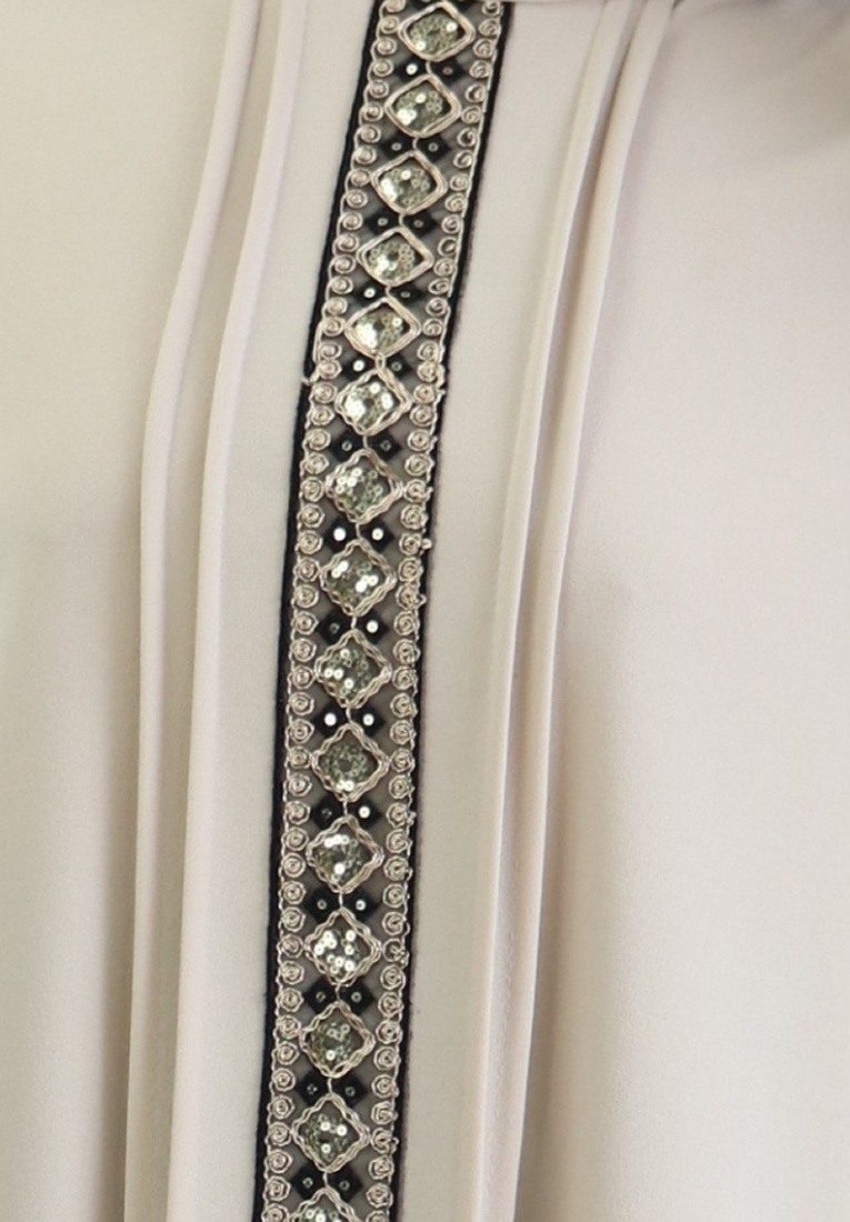 Tunique décontractée avec capuche (Sweat long pour hijab) - Couleur beige avec bandes blanches - REF. 35624 (19.00 €)