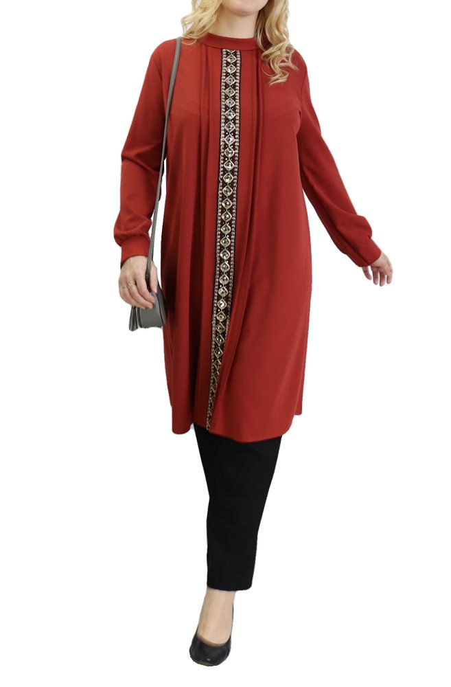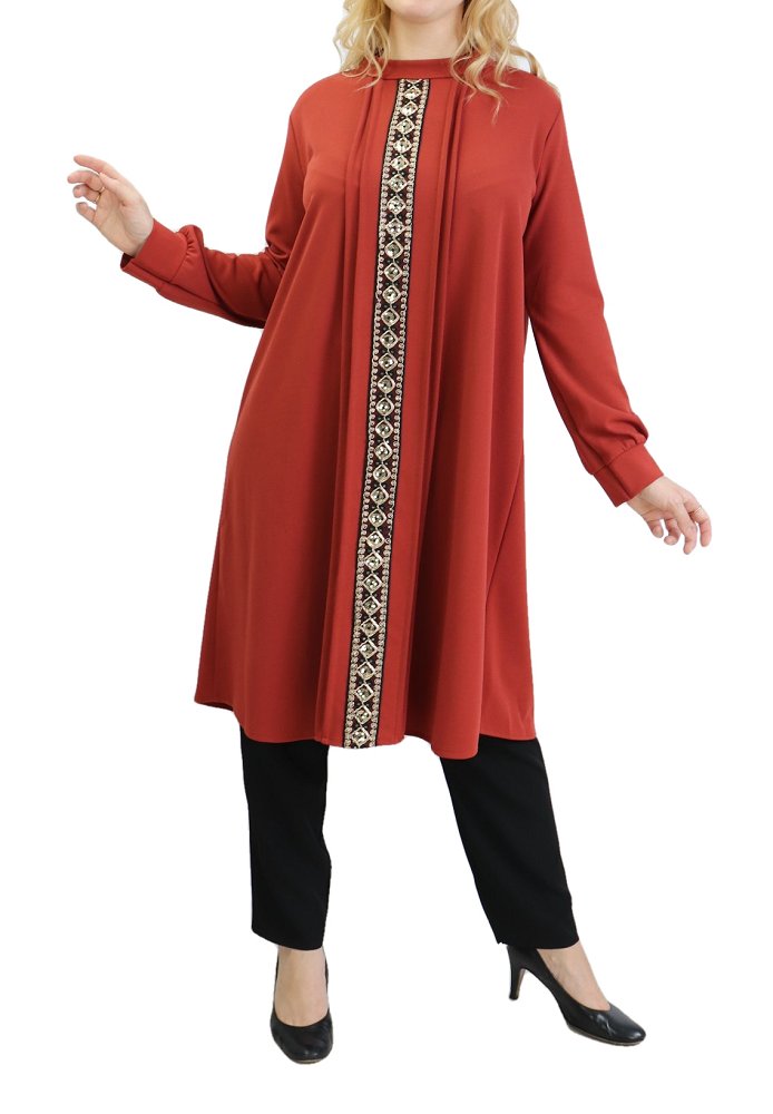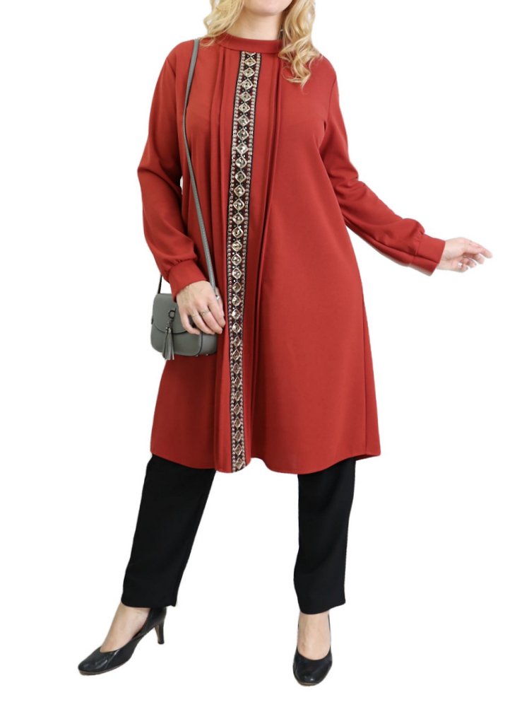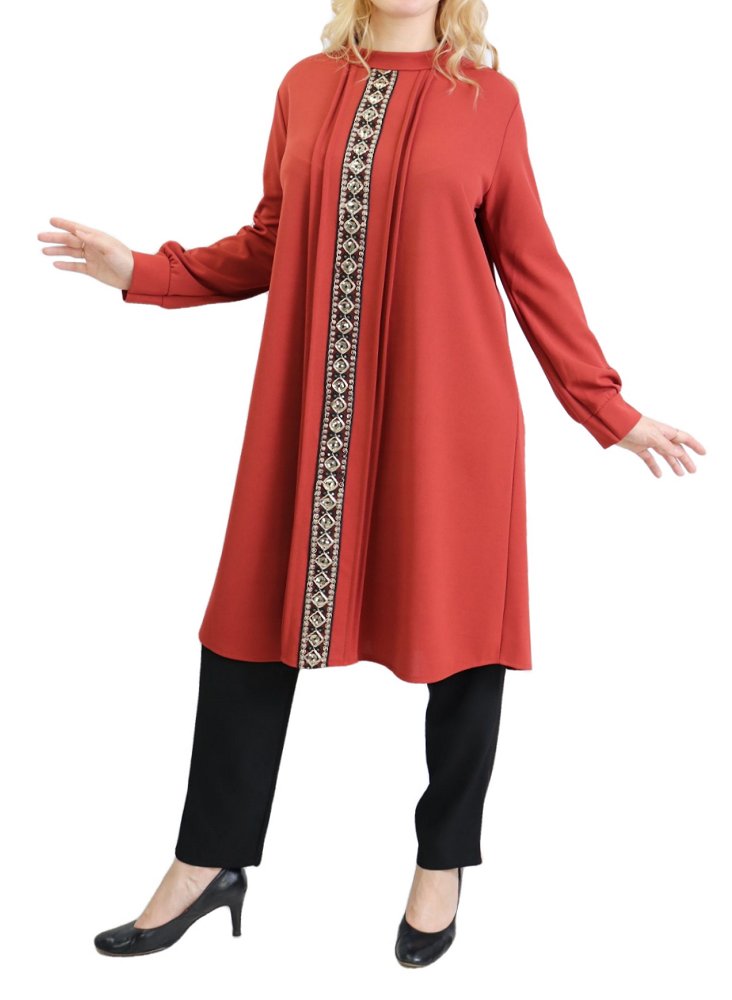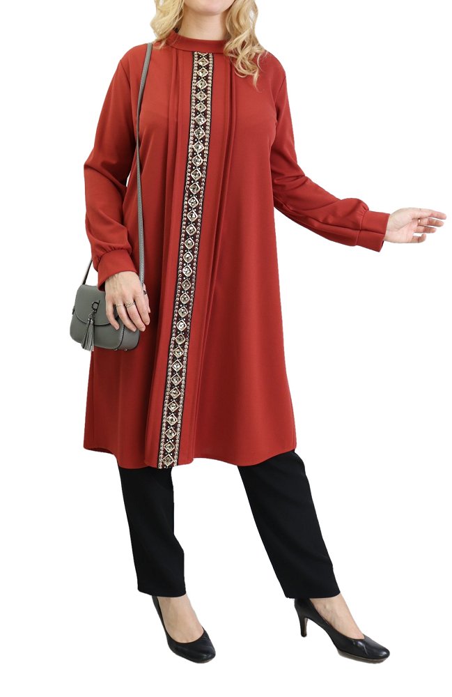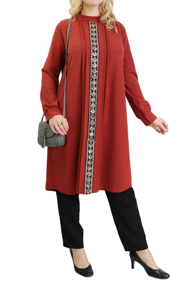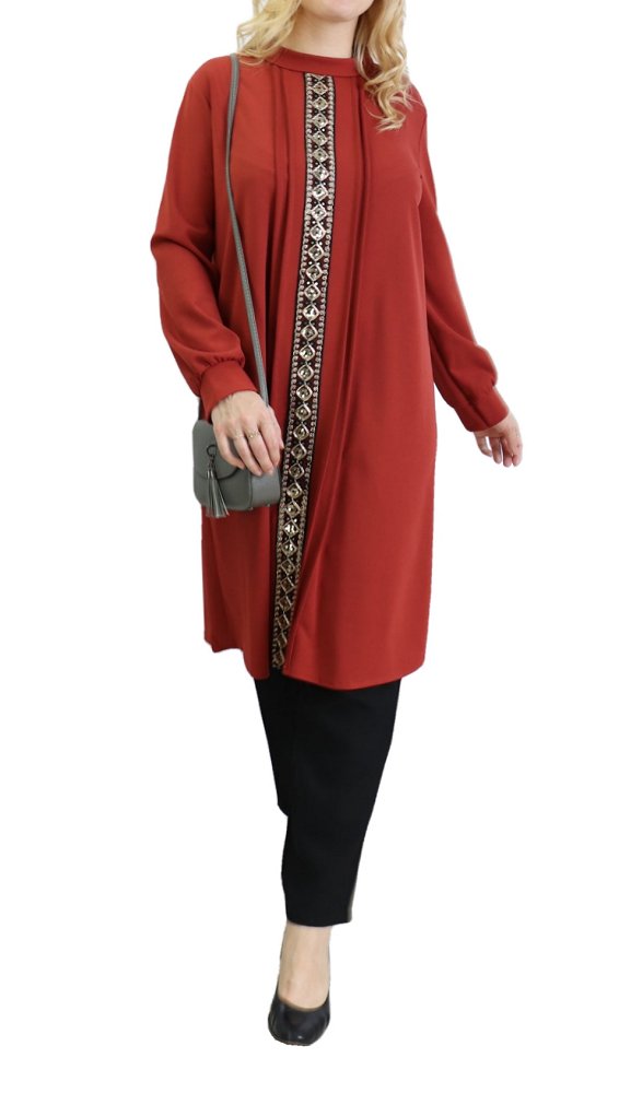 Tunique chemise longue décoration boutons pour femme - Couleur Rouille - REF. 30284 (25.00 €) - En Promotion à 19.90 €