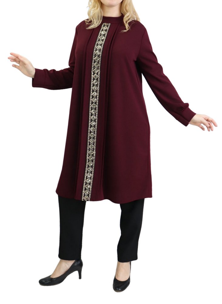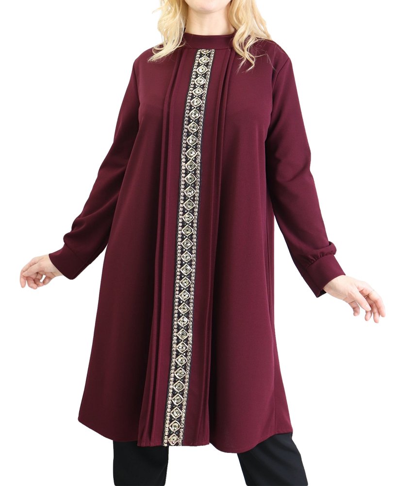 Tunique avec décoration dorée pailletée - Taille Unique - Couleur aubergine Vetement & Accessoire