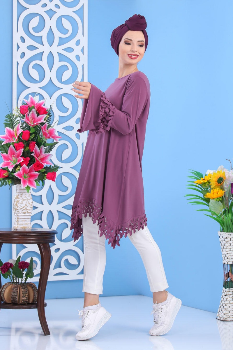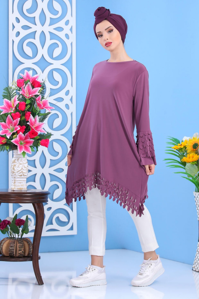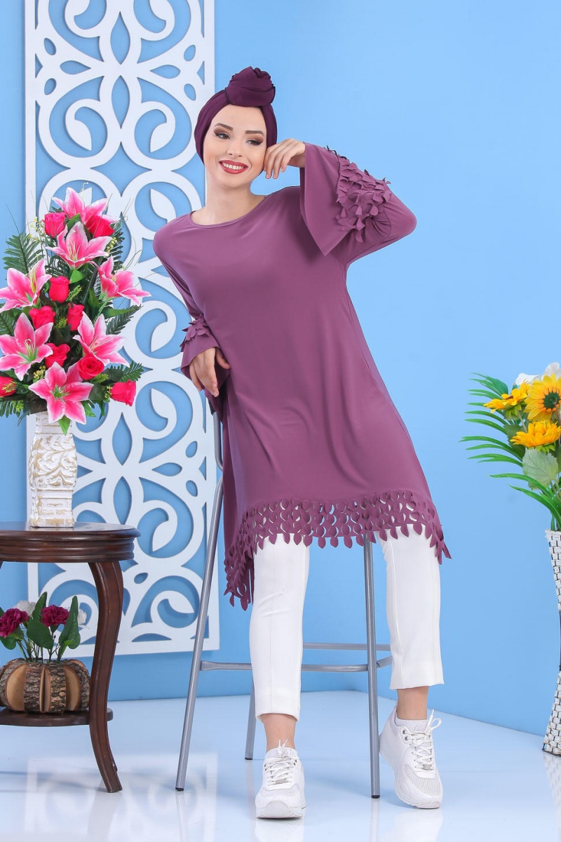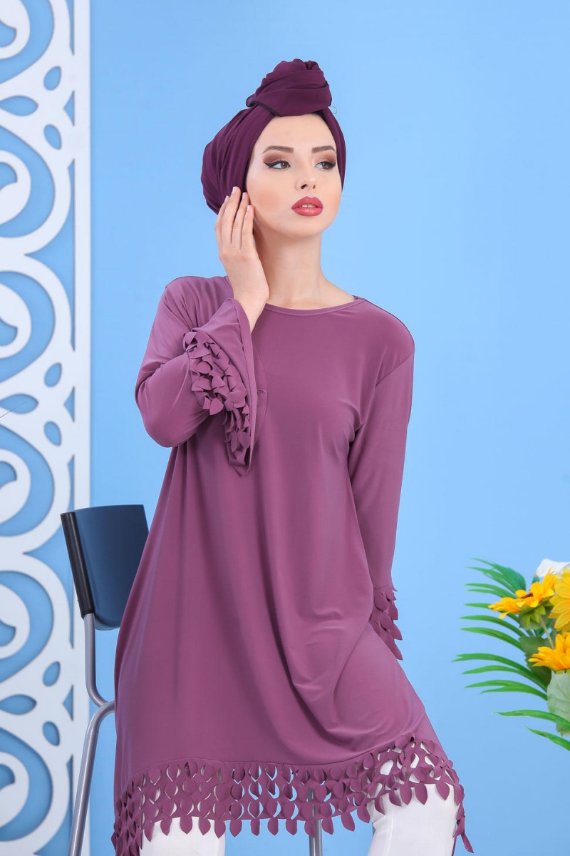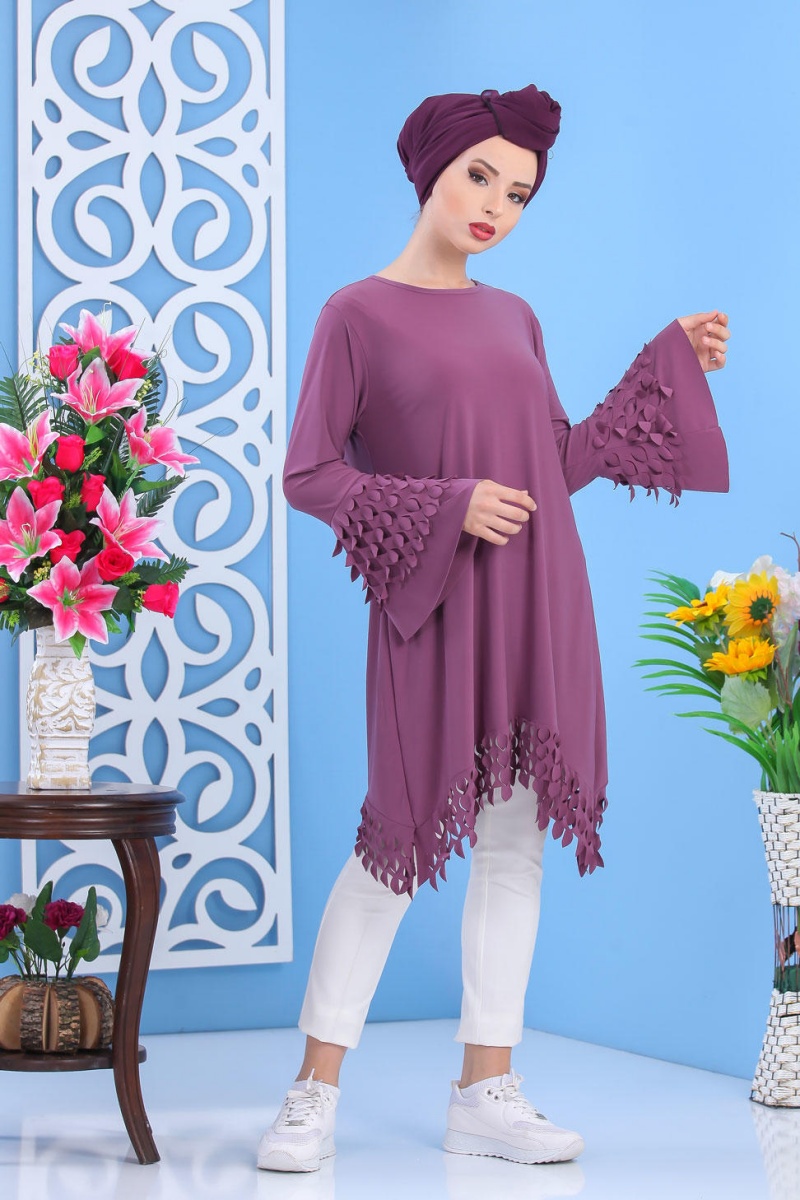 Tunique avec manches évasées pour femme - Couleur mauve Vetement & Accessoire