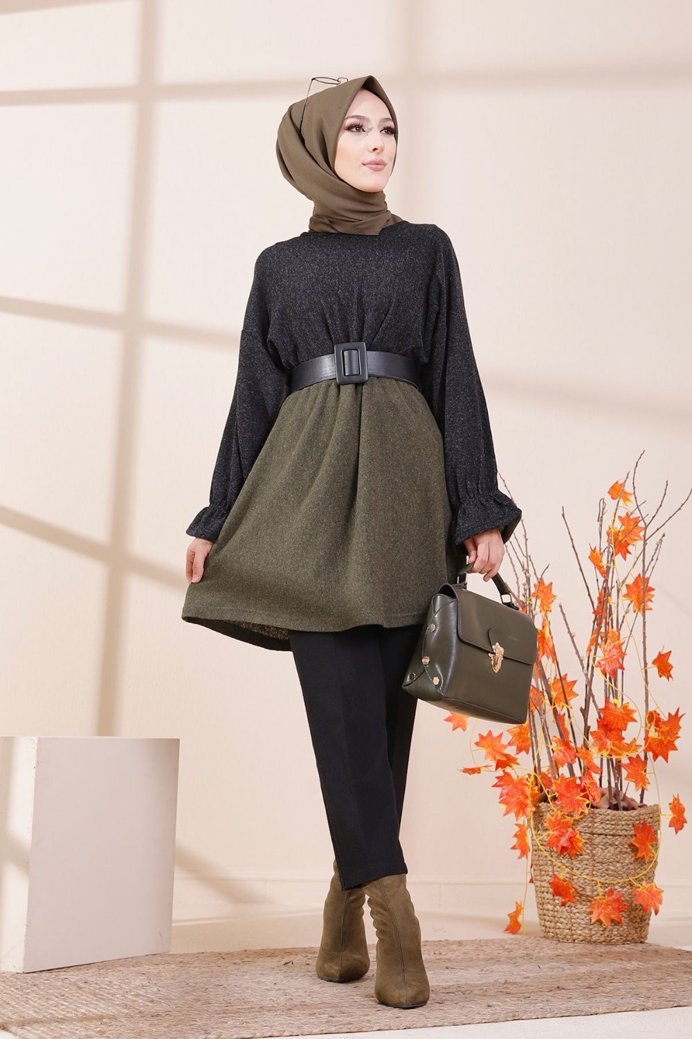 Tunique bicolore (Vetement pour femme voilée) - Couleur noir et kaki Vetement & Accessoire