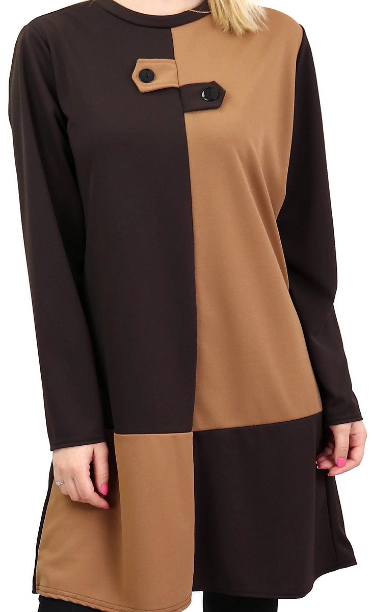 Tunique bicolore marron chocolat et caramel