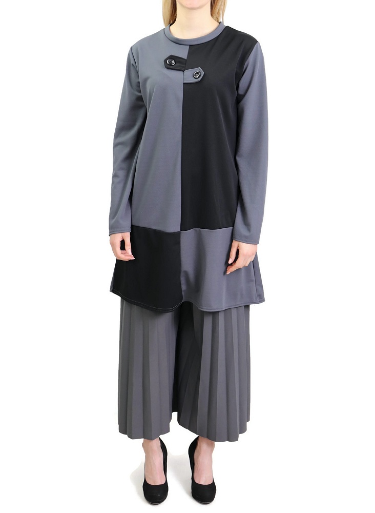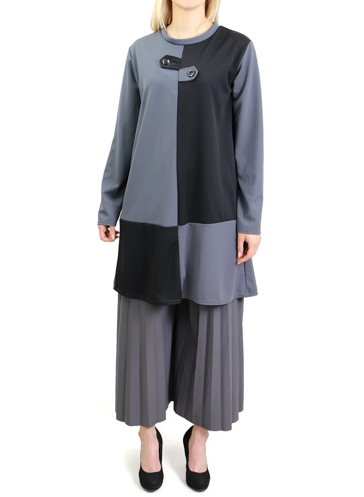 Tunique mi longue, col rond, coupe droite. Ornée devant d’empiècements asymétriques et de boutons décoratifs, cette tunique fera son effet et vous permettra de vous distinguer. Tissu épais non transparent.