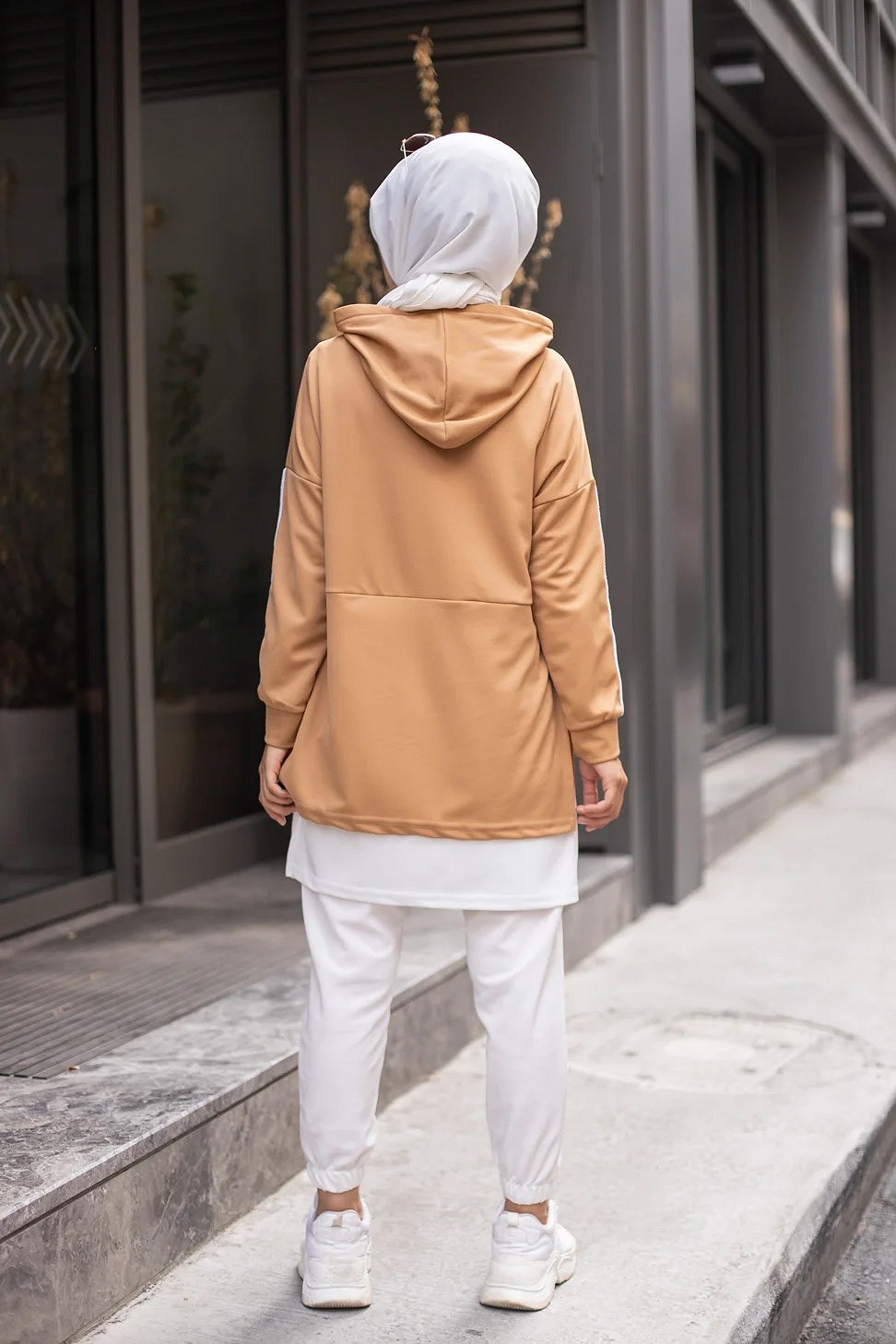Sweat long sport femme avec capuche (Tenue décontractée femme voilée) - Couleur Sable - REF. 32243 (19.90 €)