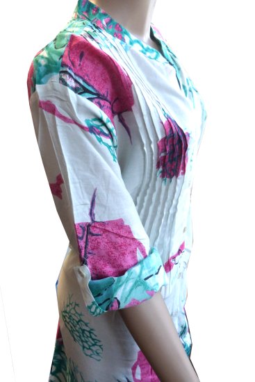 Tunique blanche de couleurs vert et fuchia Vetement & Accessoire