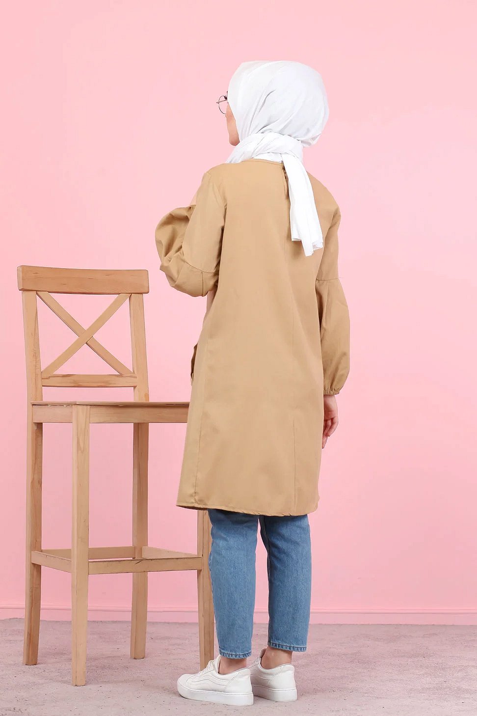 Veste longue classique boutonnée élégante (Vêtement Hijab pour femme voilée) - Couleur kaki - REF. 33248 (24.90 €)