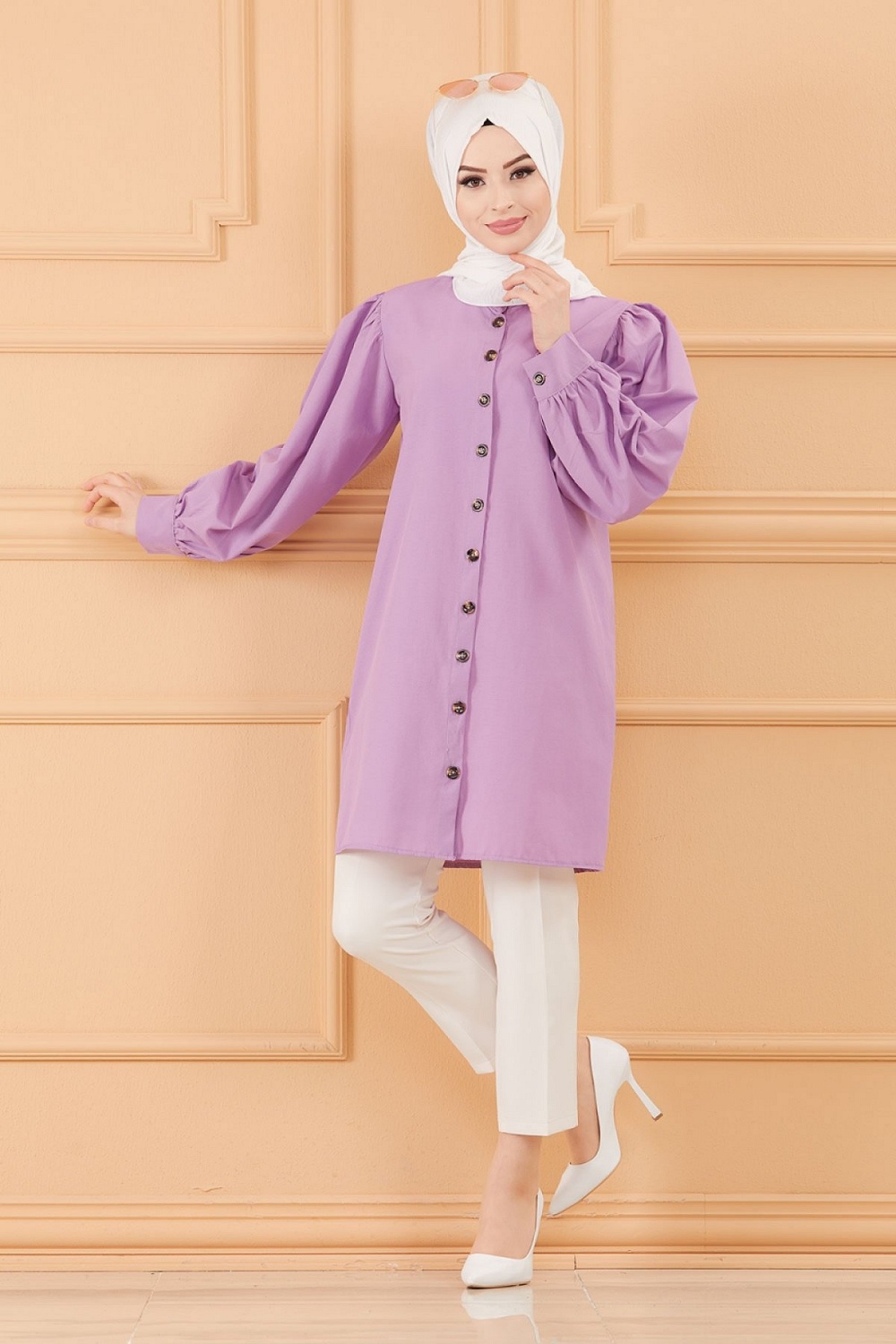 Tunique boutonnée pour femme (Tuniques style habillé pour Hijab) - Couleur lilas Vetement & Accessoire