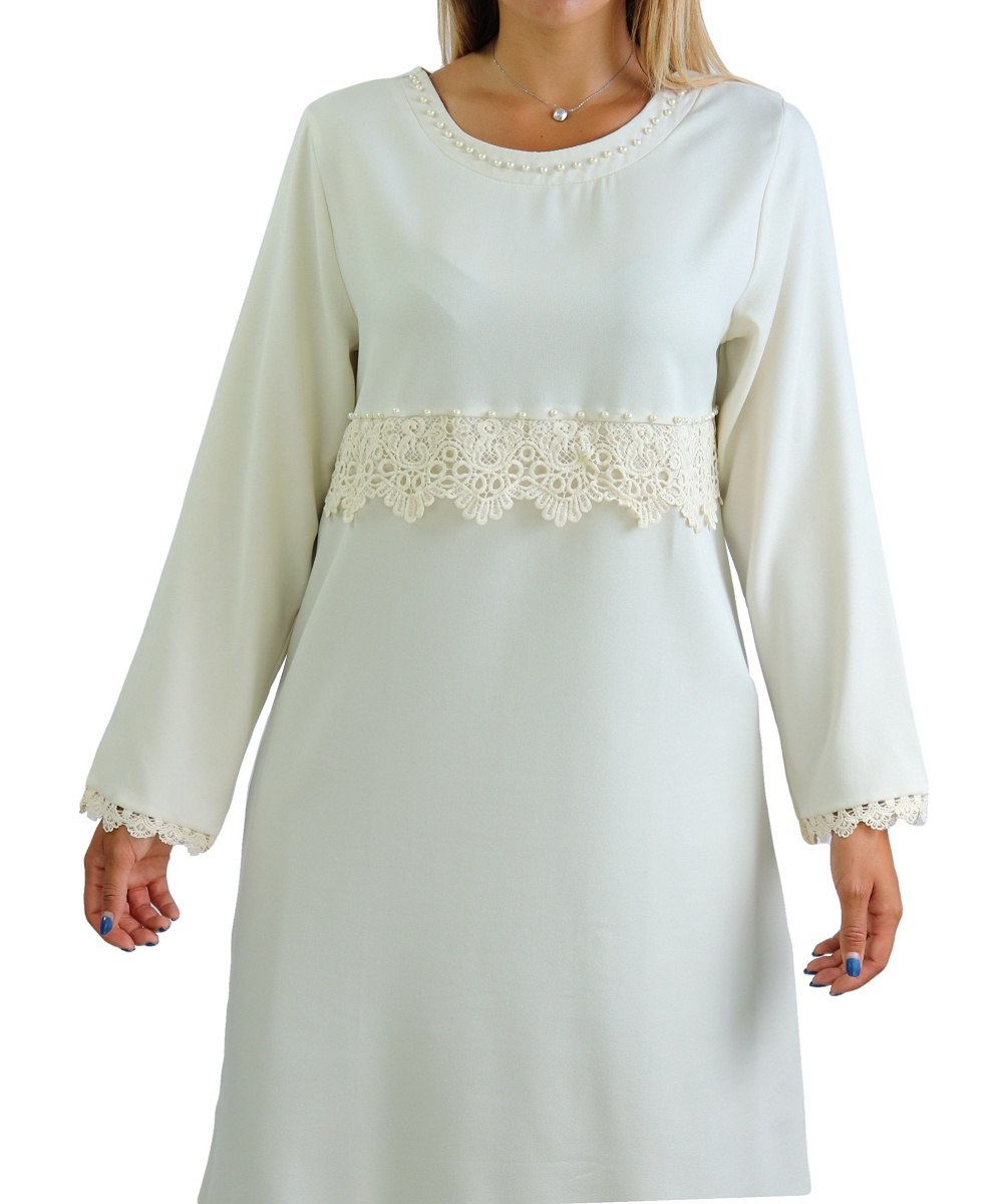 Tunique brodée et perlée - Couleur Blanc Cassé Vetement & Accessoire