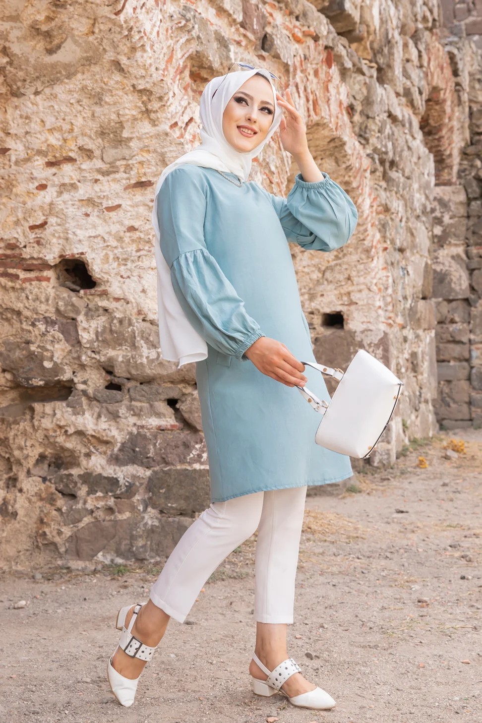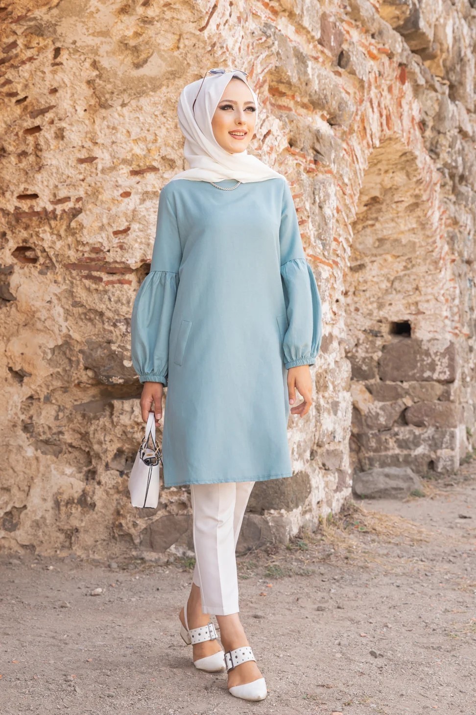 Tunique casual a manche ballon pour femme (Vetement habille pour musulmane) - Couleur menthe