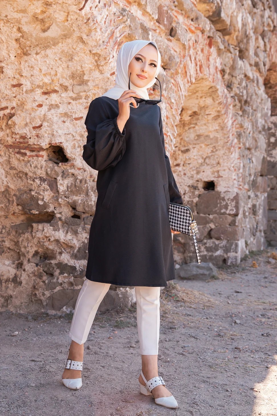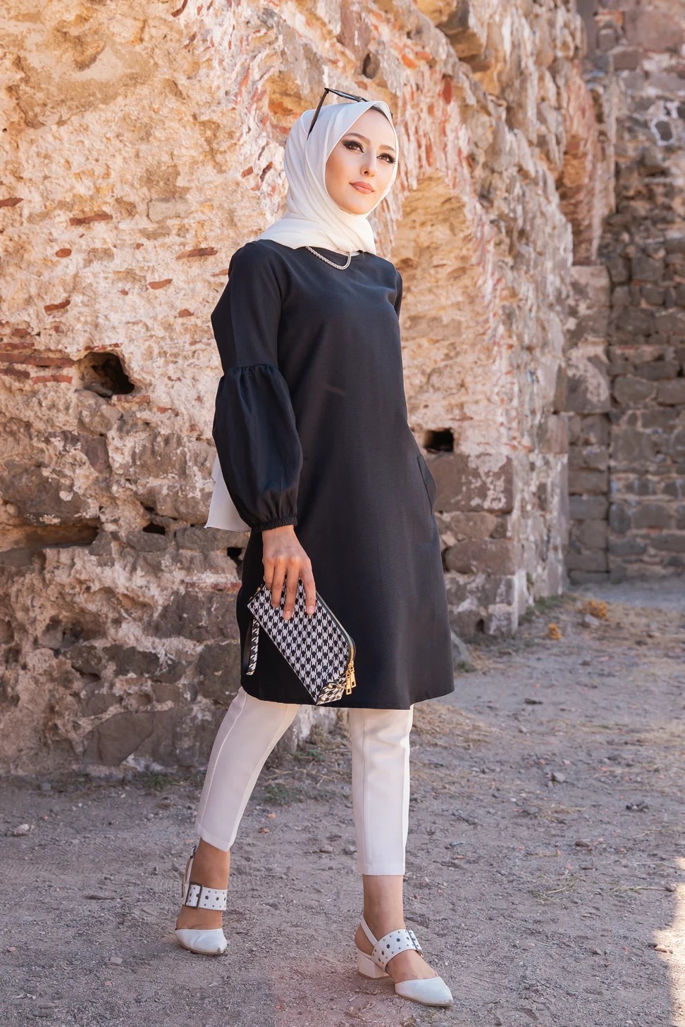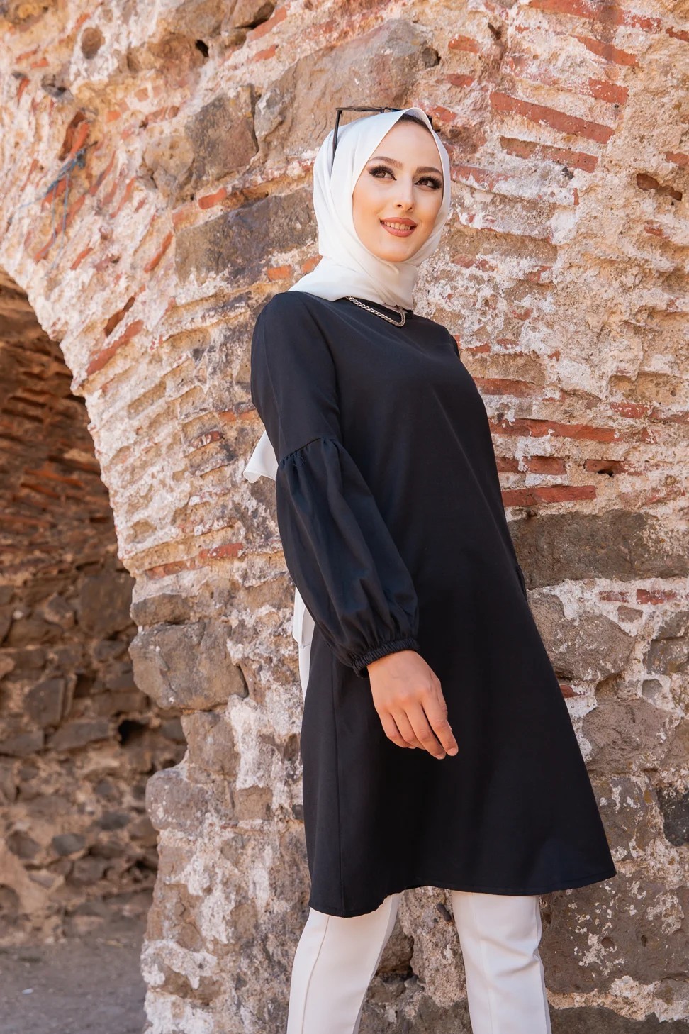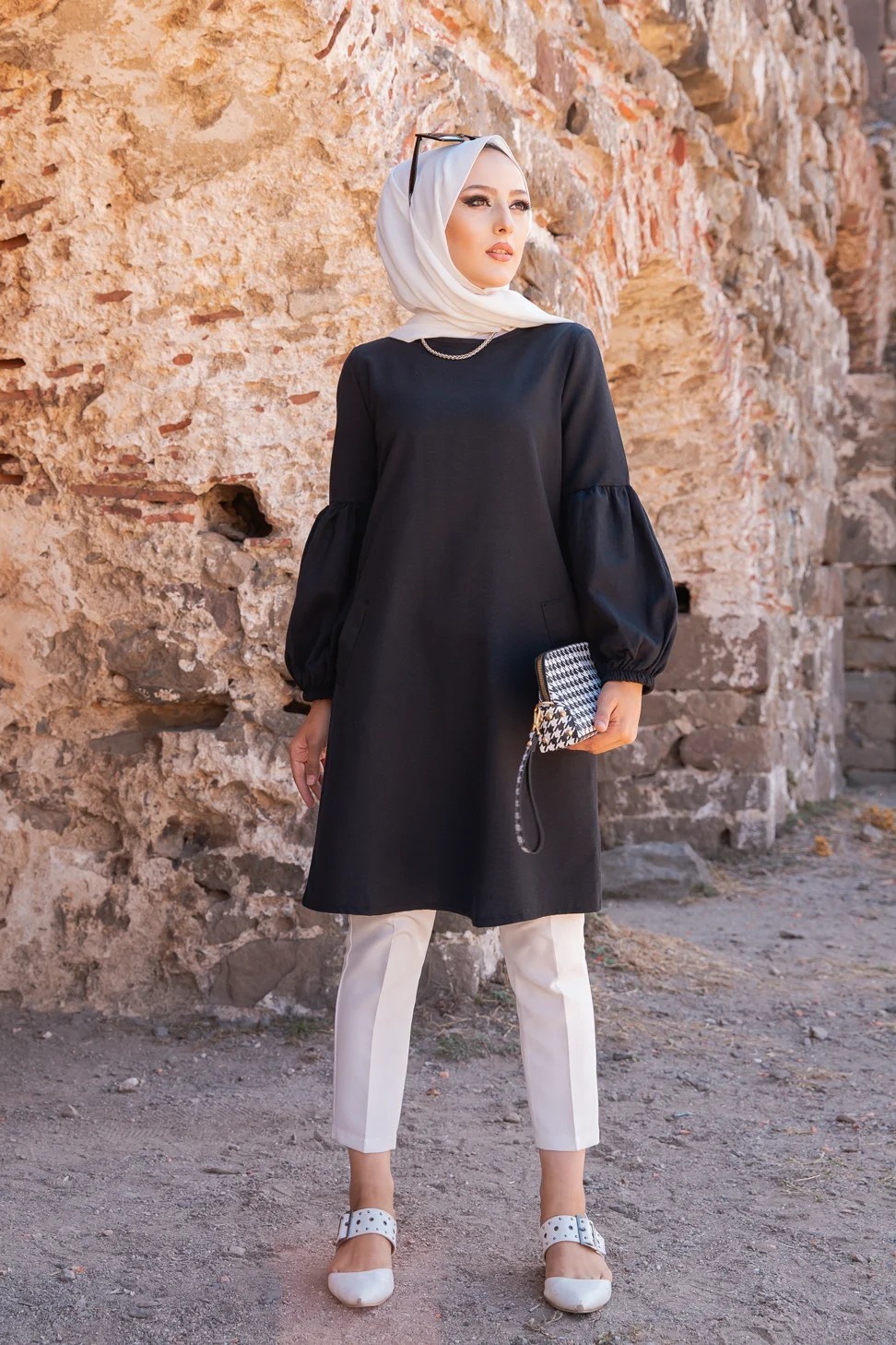 Tunique casual a manches bouffantes pour femme (Vetement pour musulmane) - Couleur noir