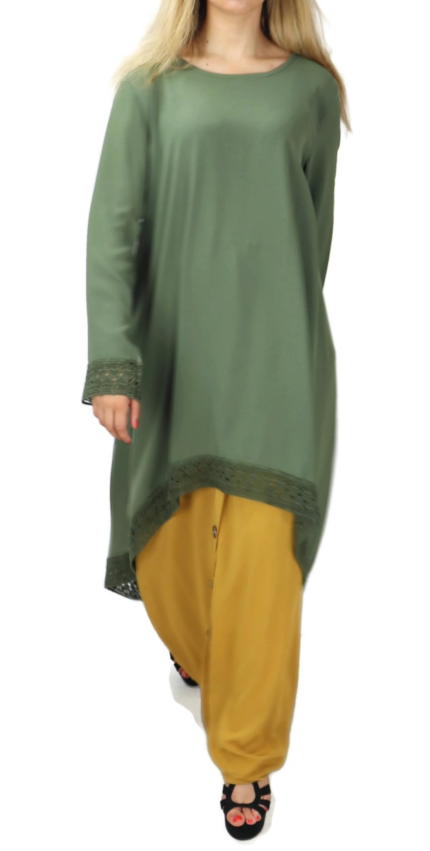 Tunique casual ample evasee avec dentelle pour femme - Couleur kaki