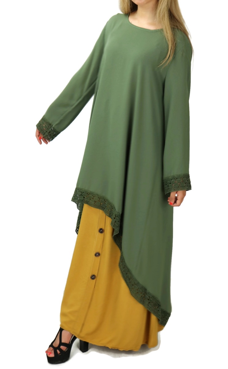 Tunique casual ample évasée avec dentelle pour femme - Couleur kaki Vetement & Accessoire