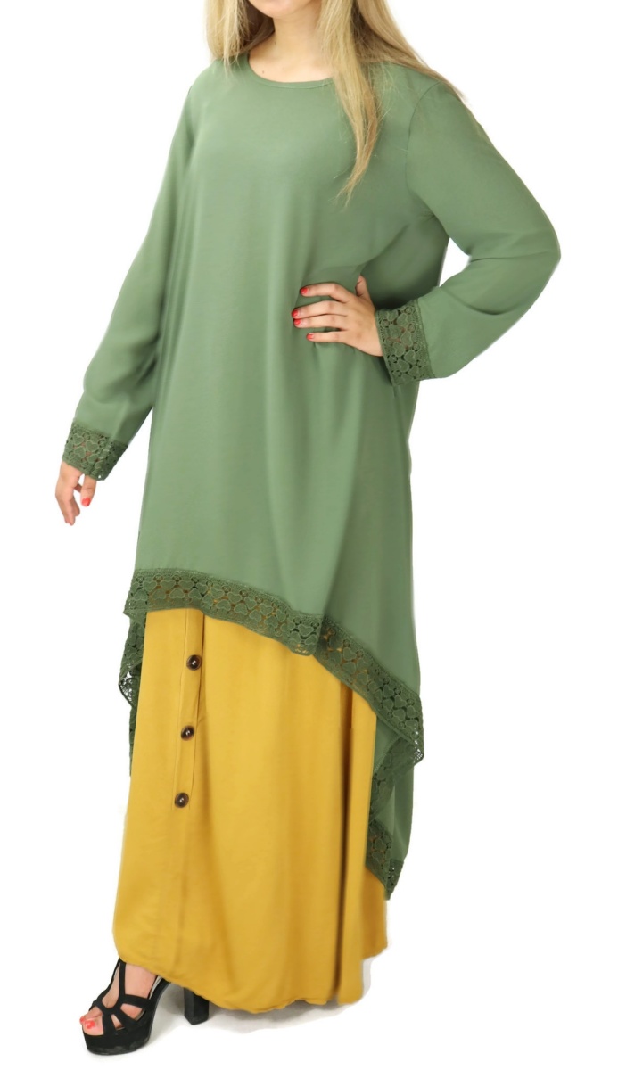 Tunique-Chemise en dentelle pour femme (Vêtement habillé pour hijab) - Couleur moutarde - REF. 35979 (24.90 €)