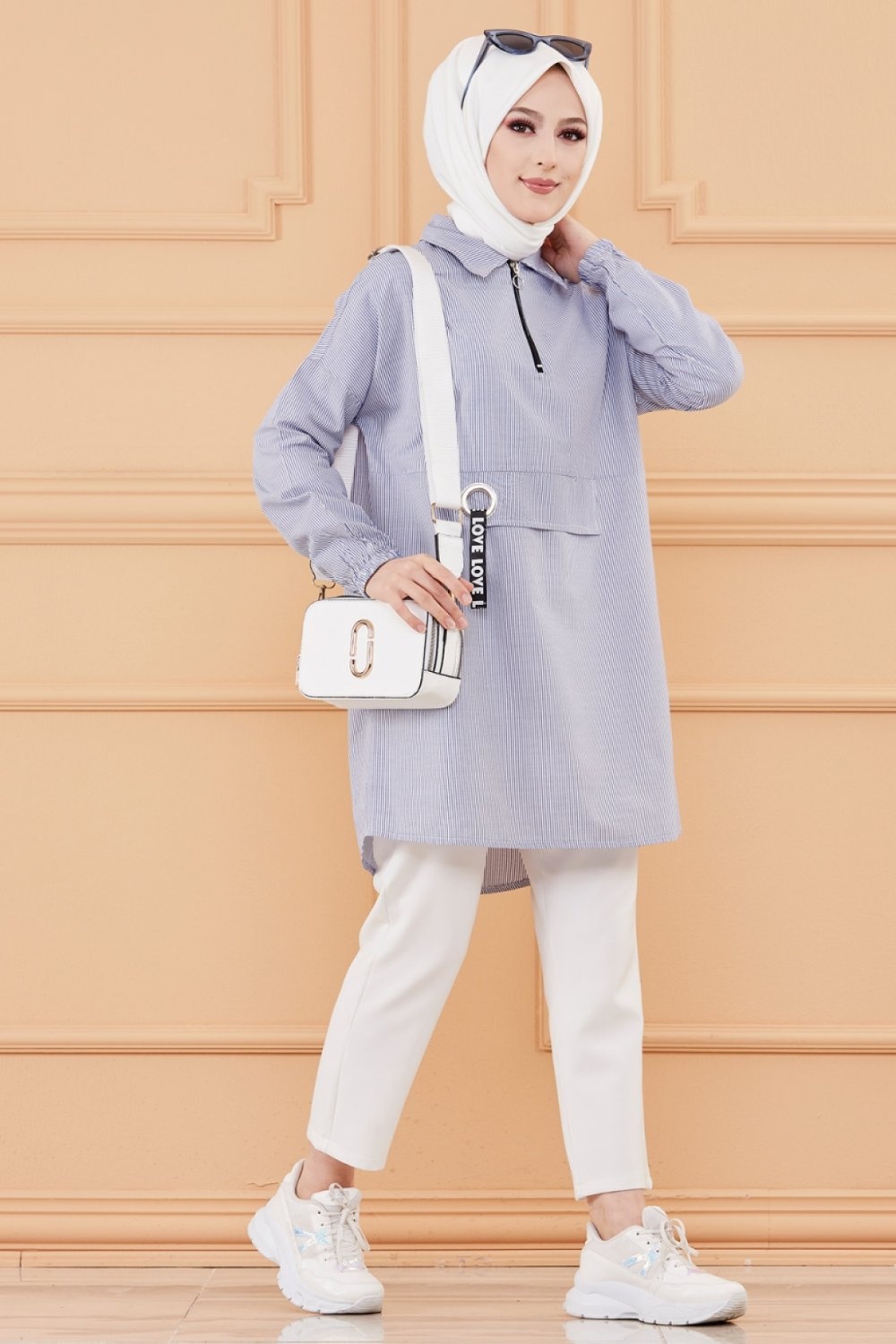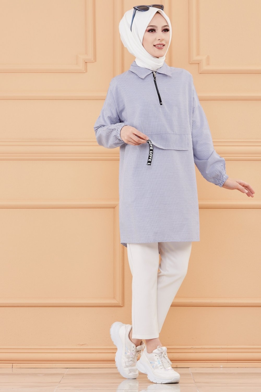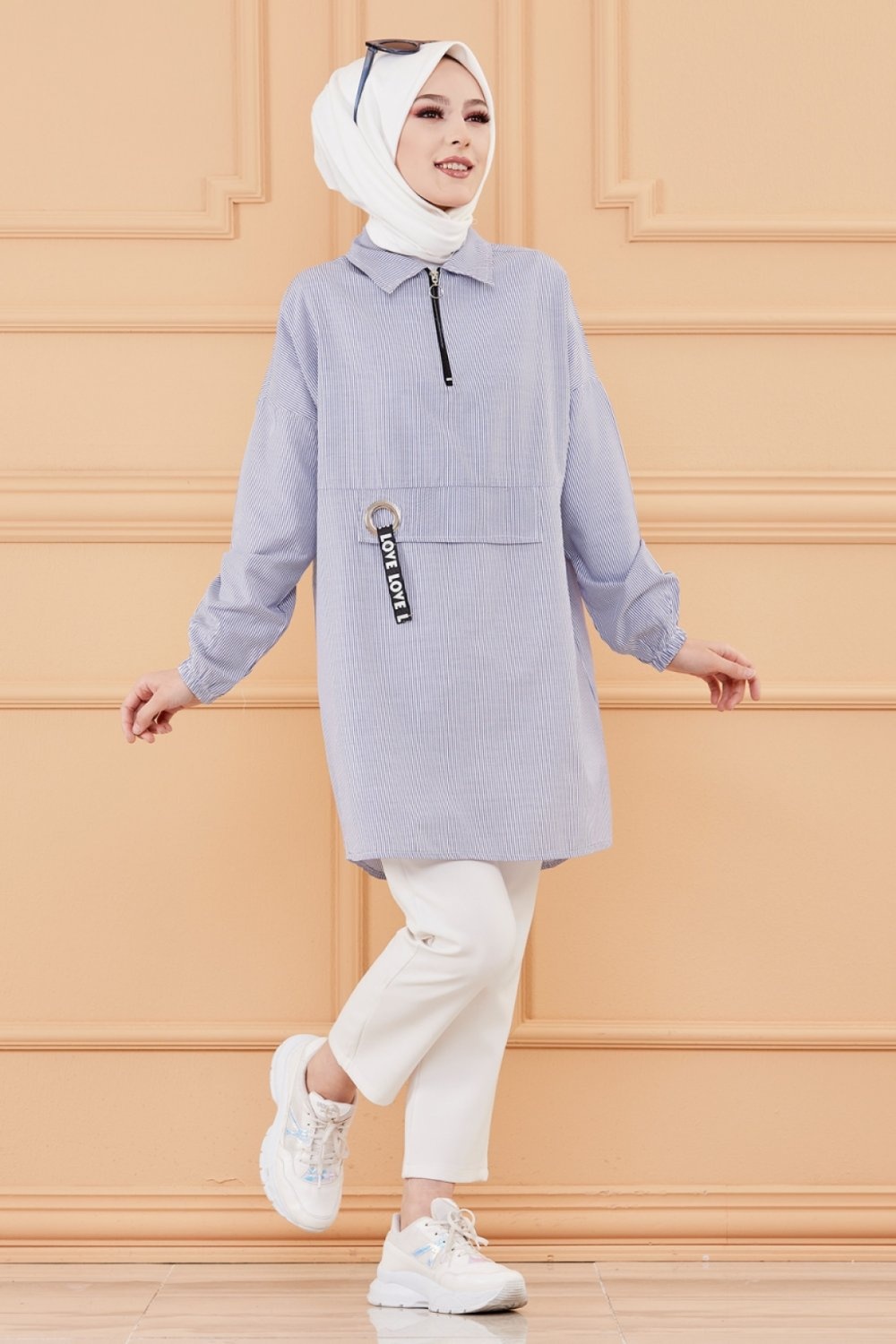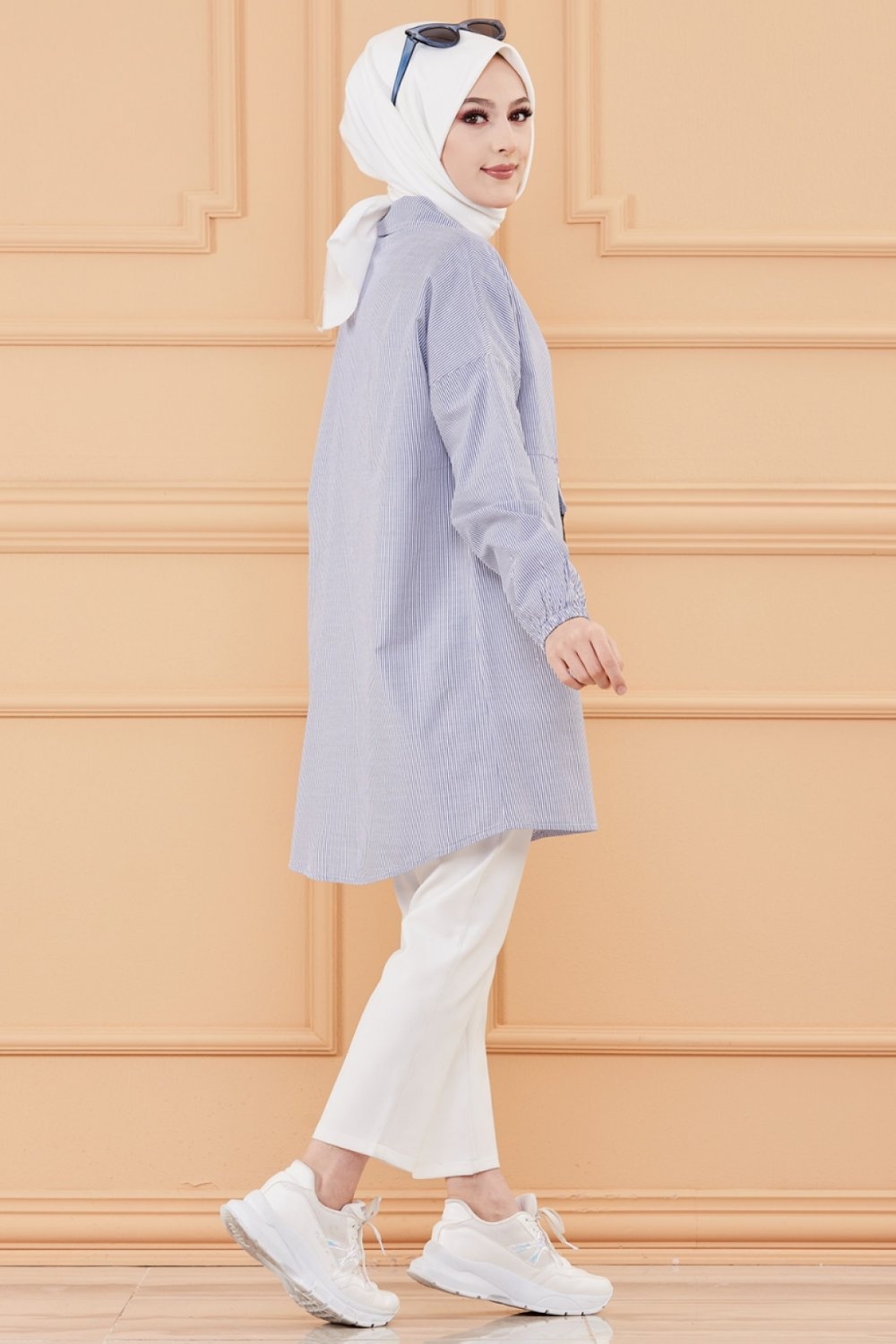 Tunique casual pour femme (Boutique Vetement Hijab en ligne) - Rayures couleur bleu