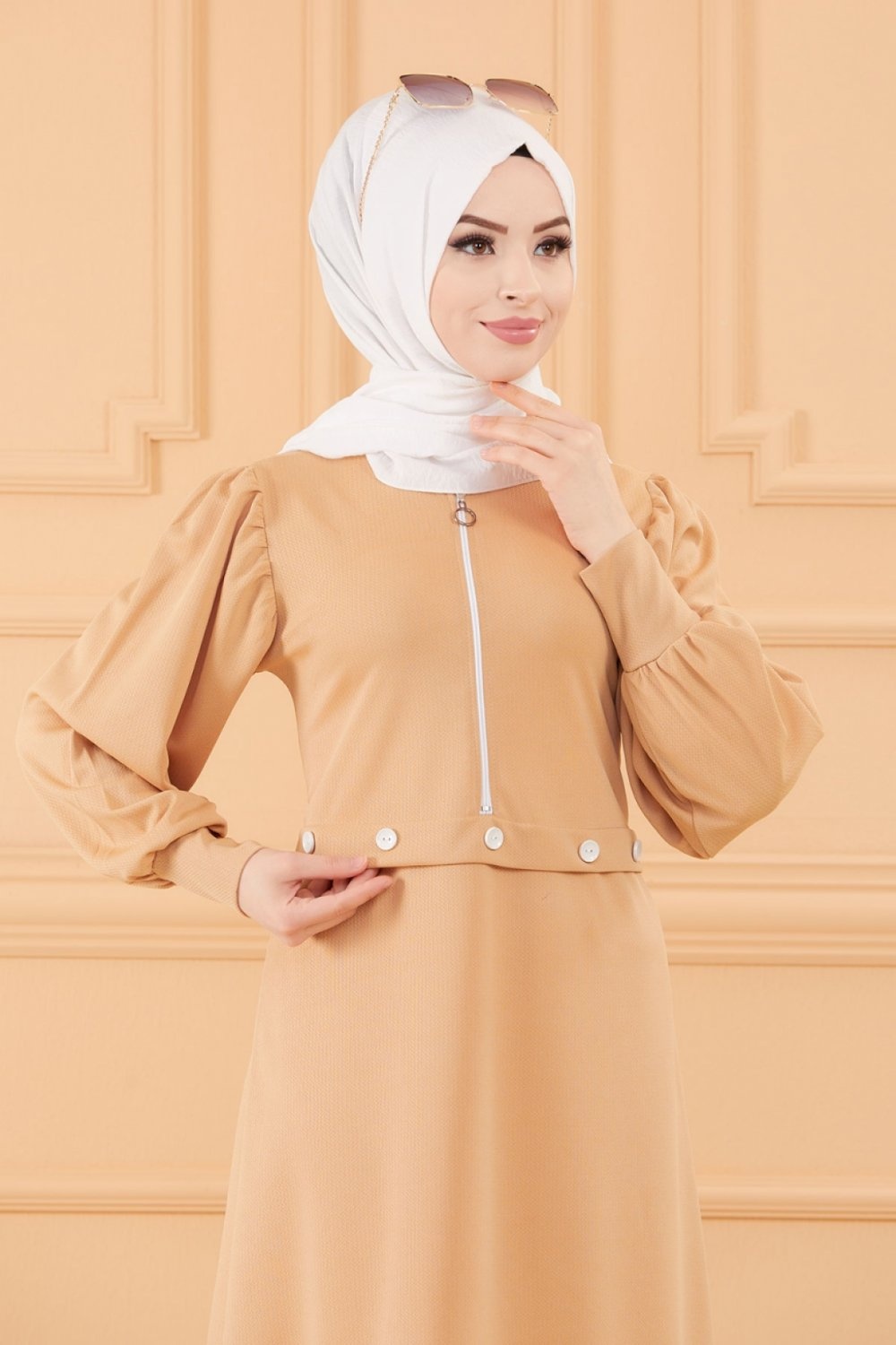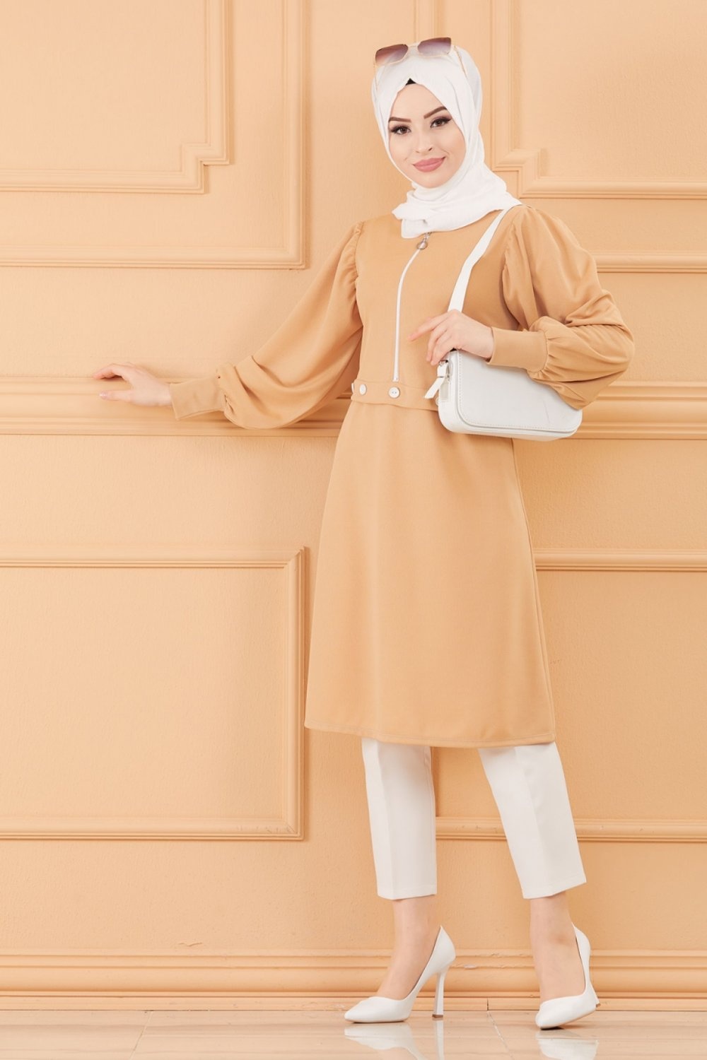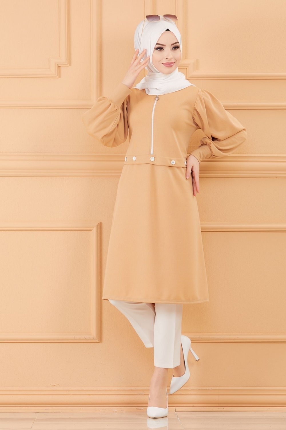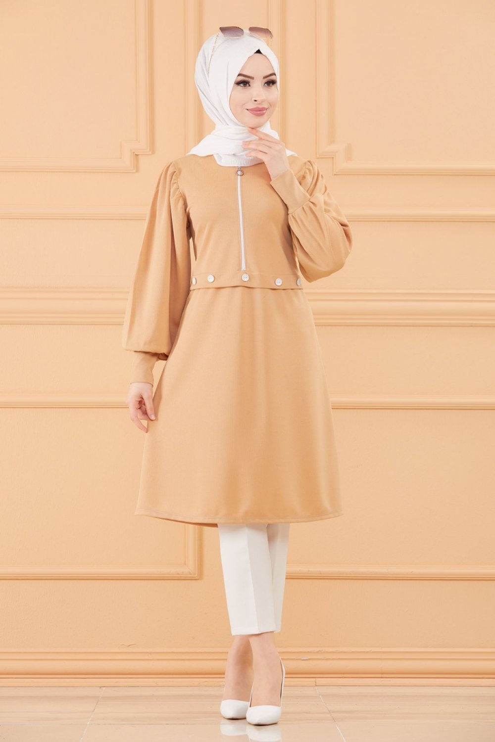 Tunique casual pour femme (Boutique en ligne Vetement Hijab - Mode Musulmane) - Couleur beige