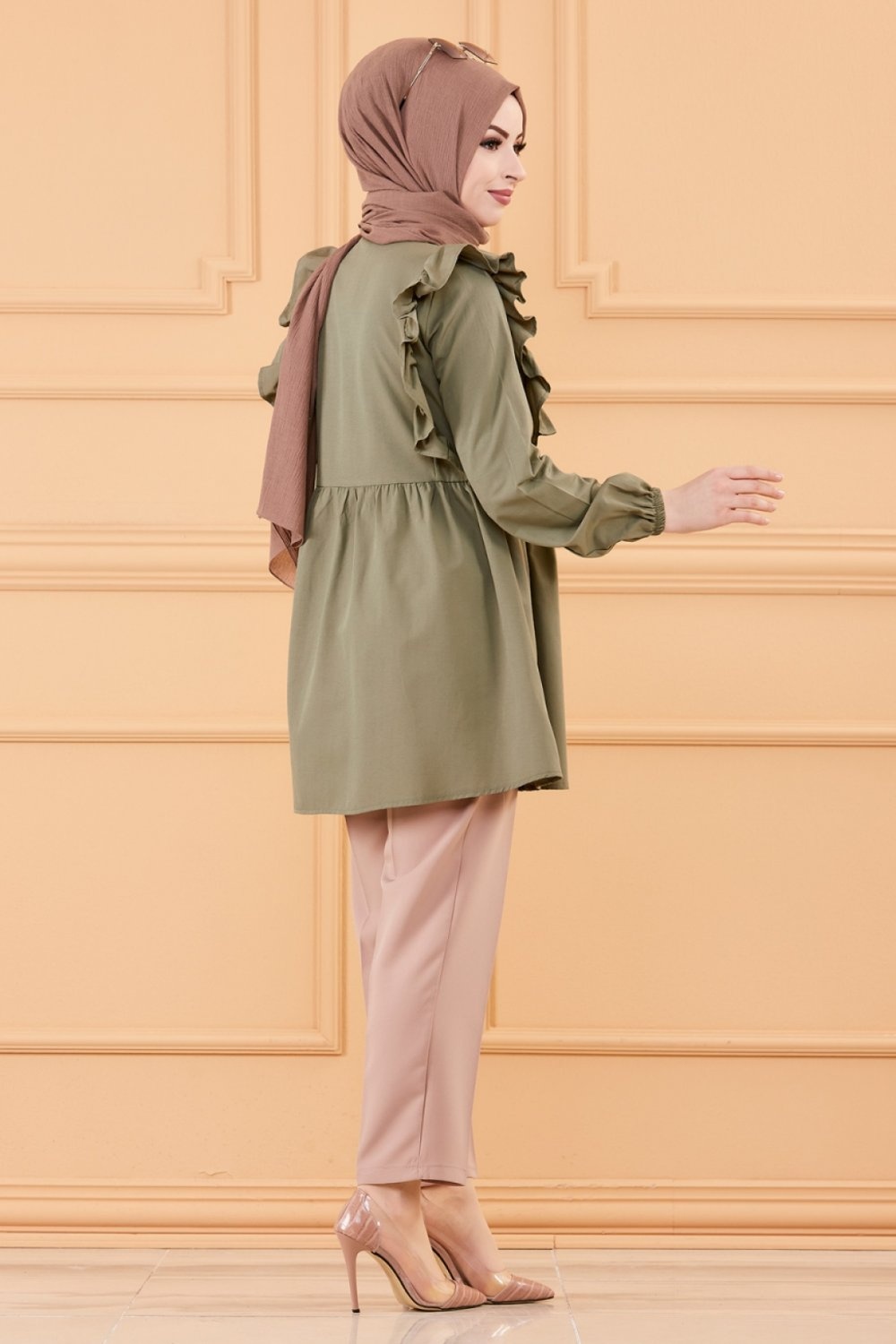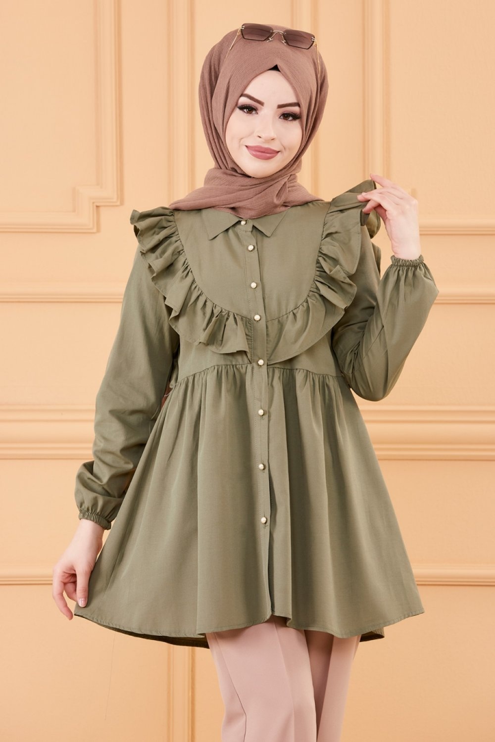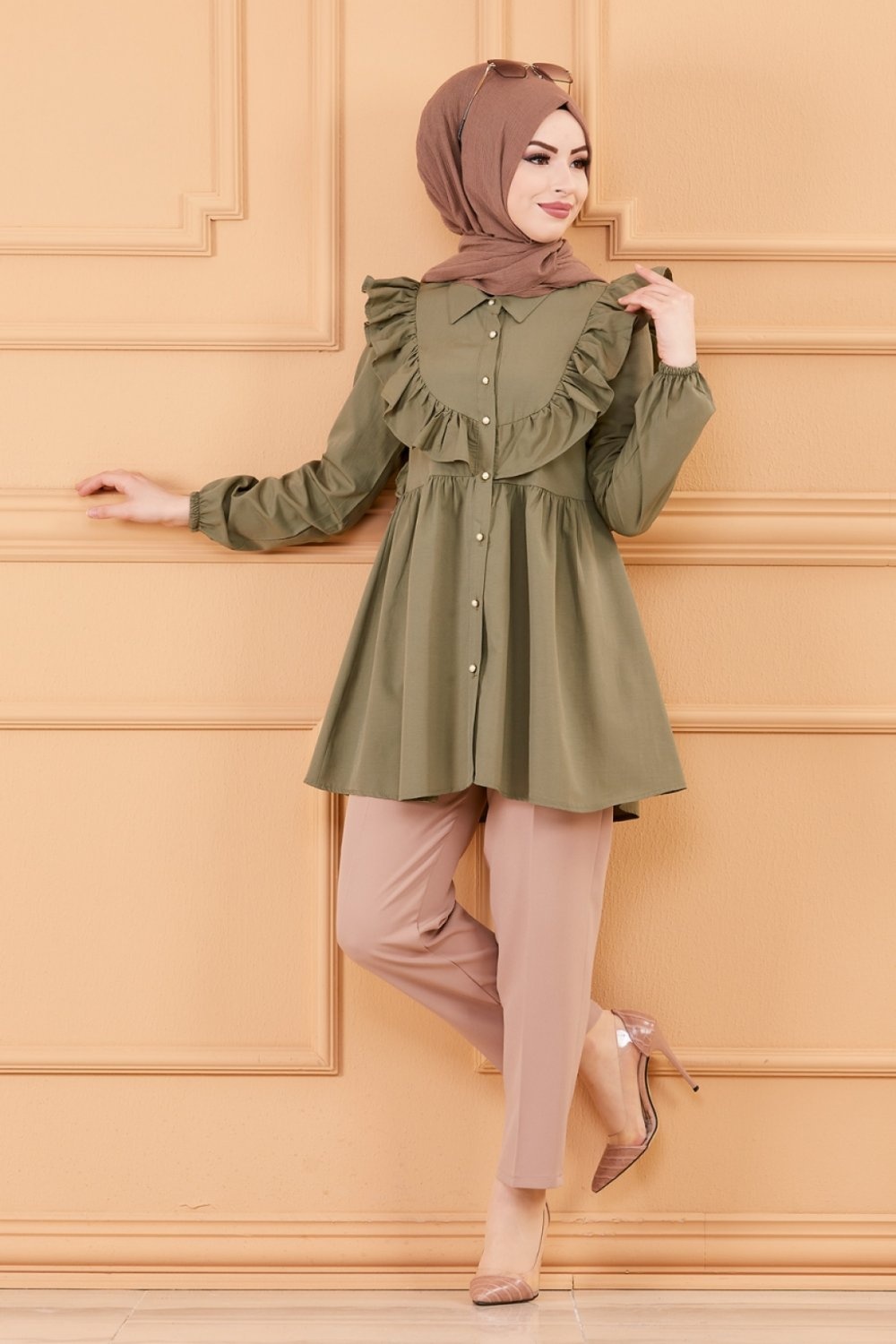 Chemise à froufrou (Vetement femme voilée moderne) - Couleur kaki - REF. 34573 (24.90 €)