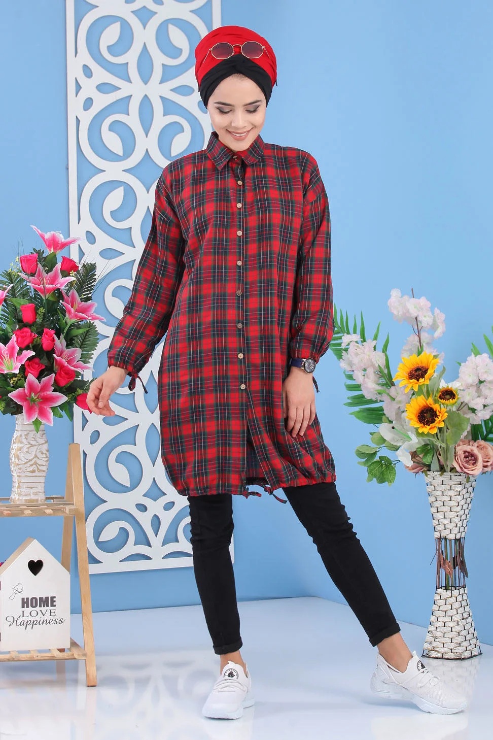 Tunique Chemise ample fermeture boutons pour femme (Vêtements Mode islamique) - Couleur rouge - REF. 33131 (24.00 €)