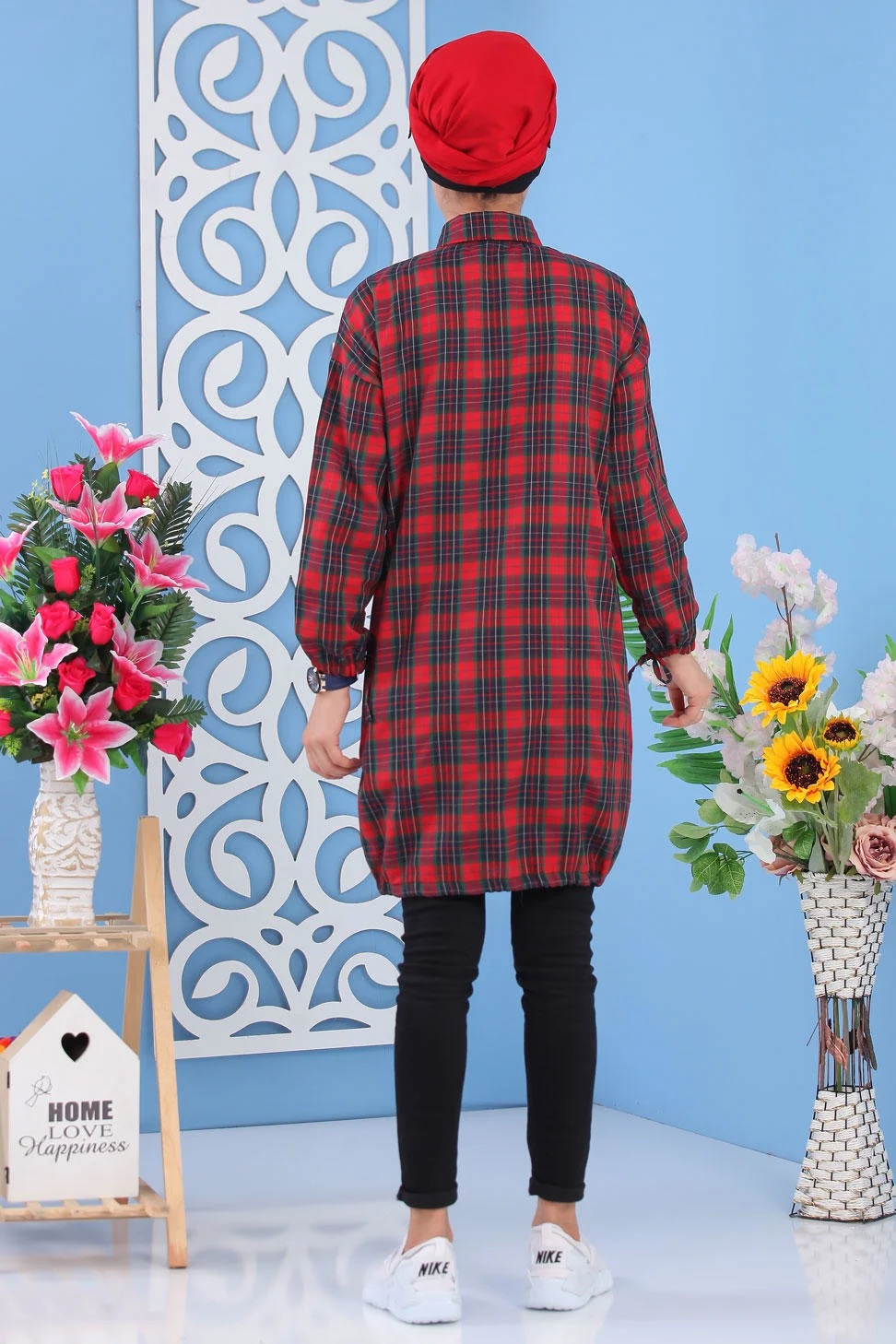 Tunique chemise longue à carreaux pour femme - Couleur noir, vert et rouge Vetement & Accessoire