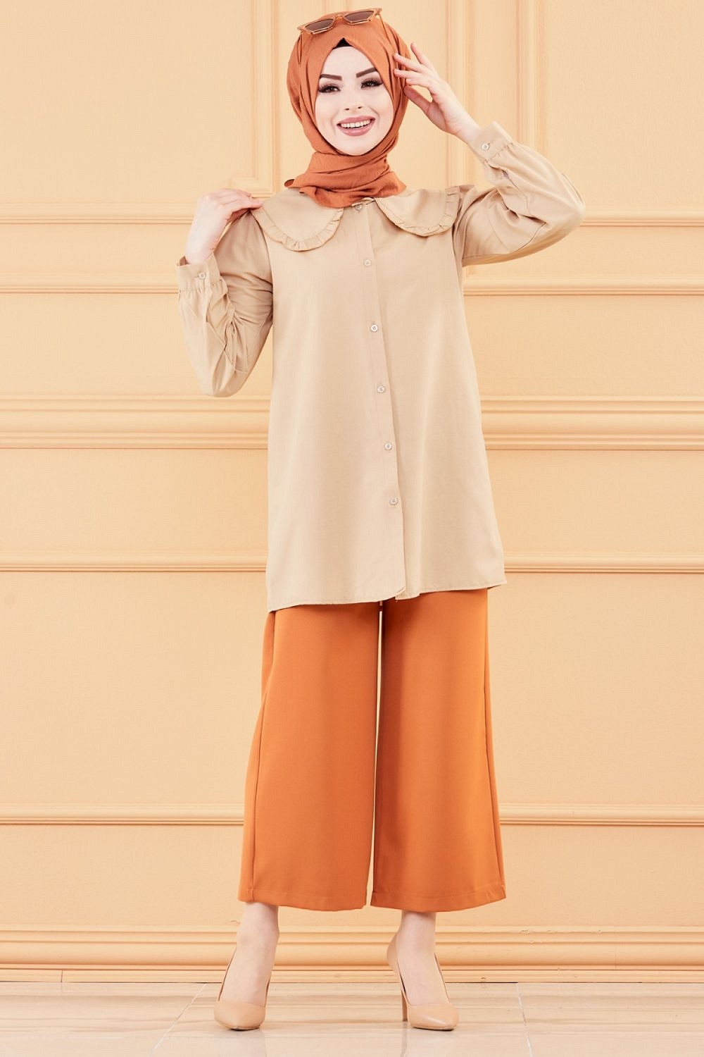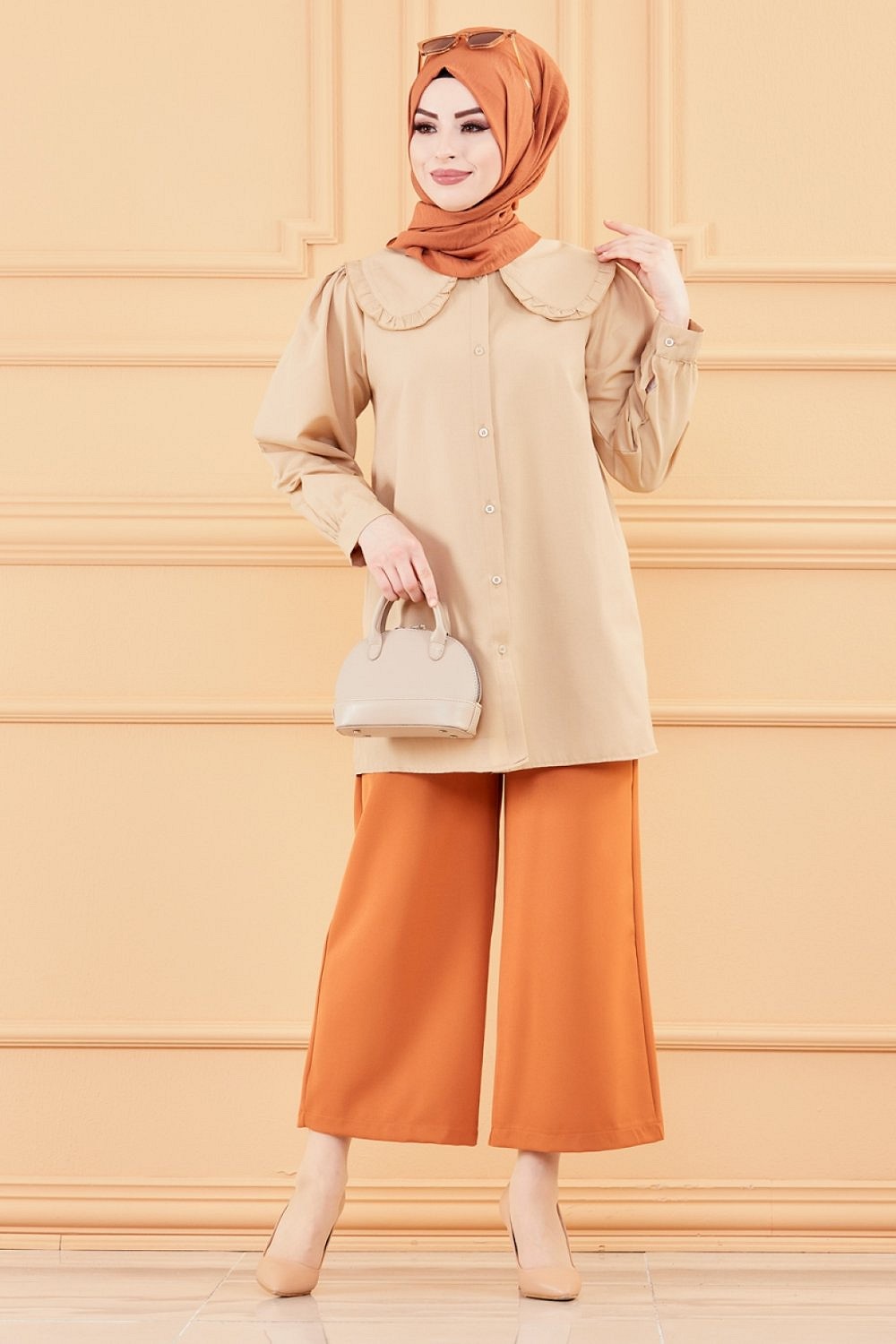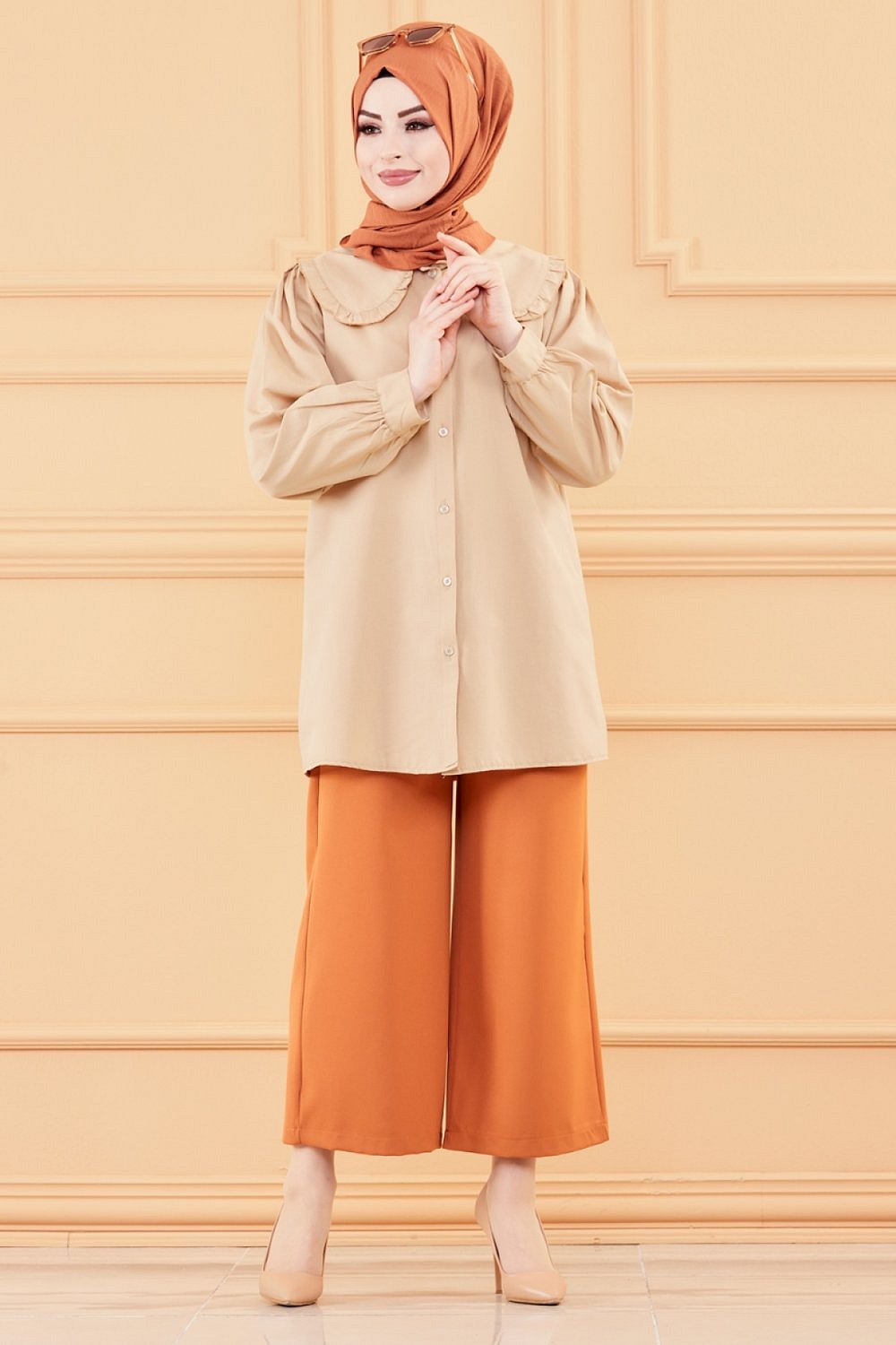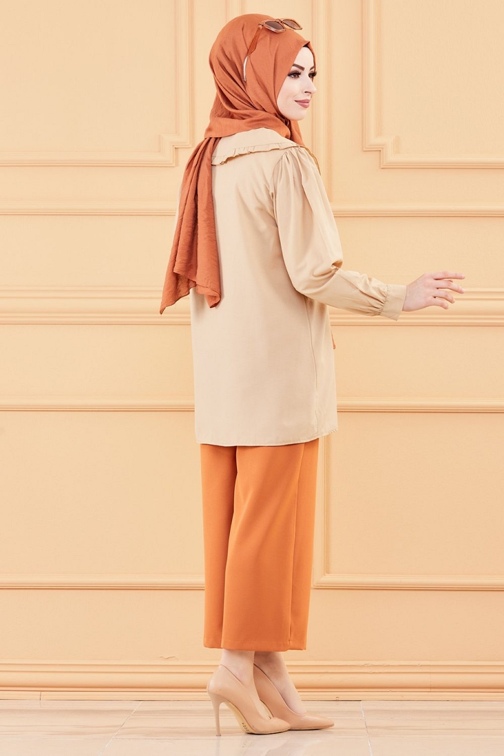 Chemise à froufrou (Vetement femme musulmane moderne) - Couleur brique - REF. 34574 (24.90 €)