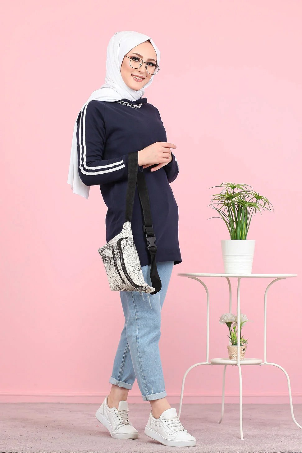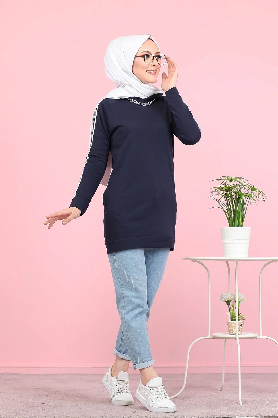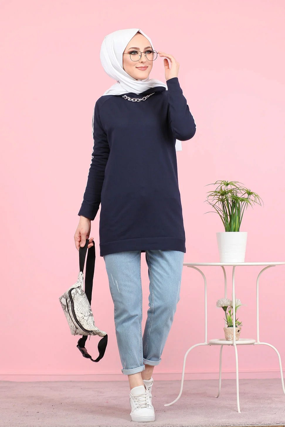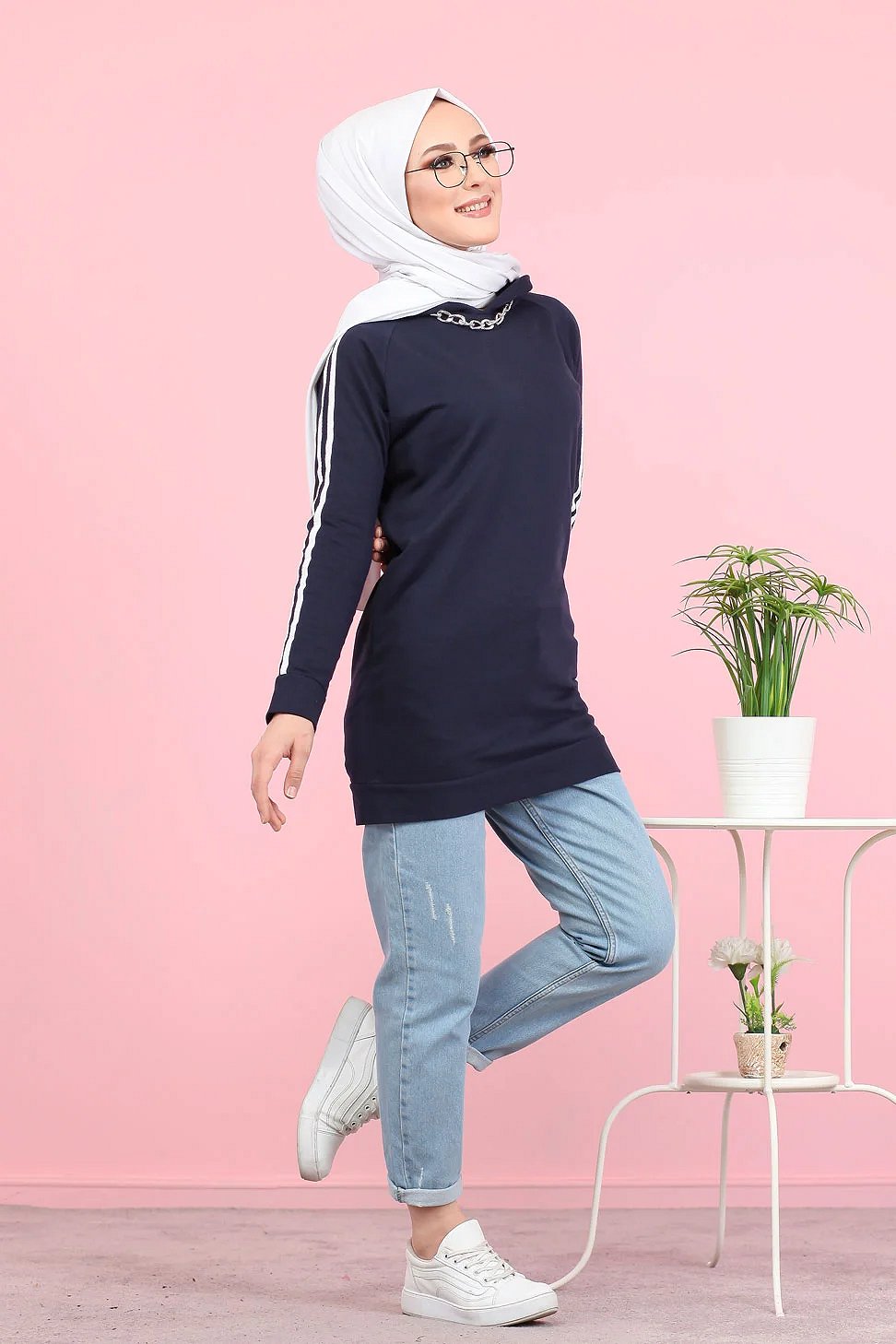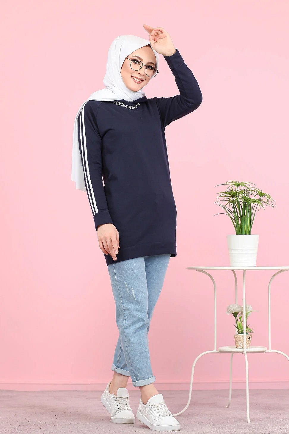 Sweat ample imprimé - Tunique (Tenue hijab moderne pour femme) - Couleur bleu marine - REF. 38644 (24.90 €)