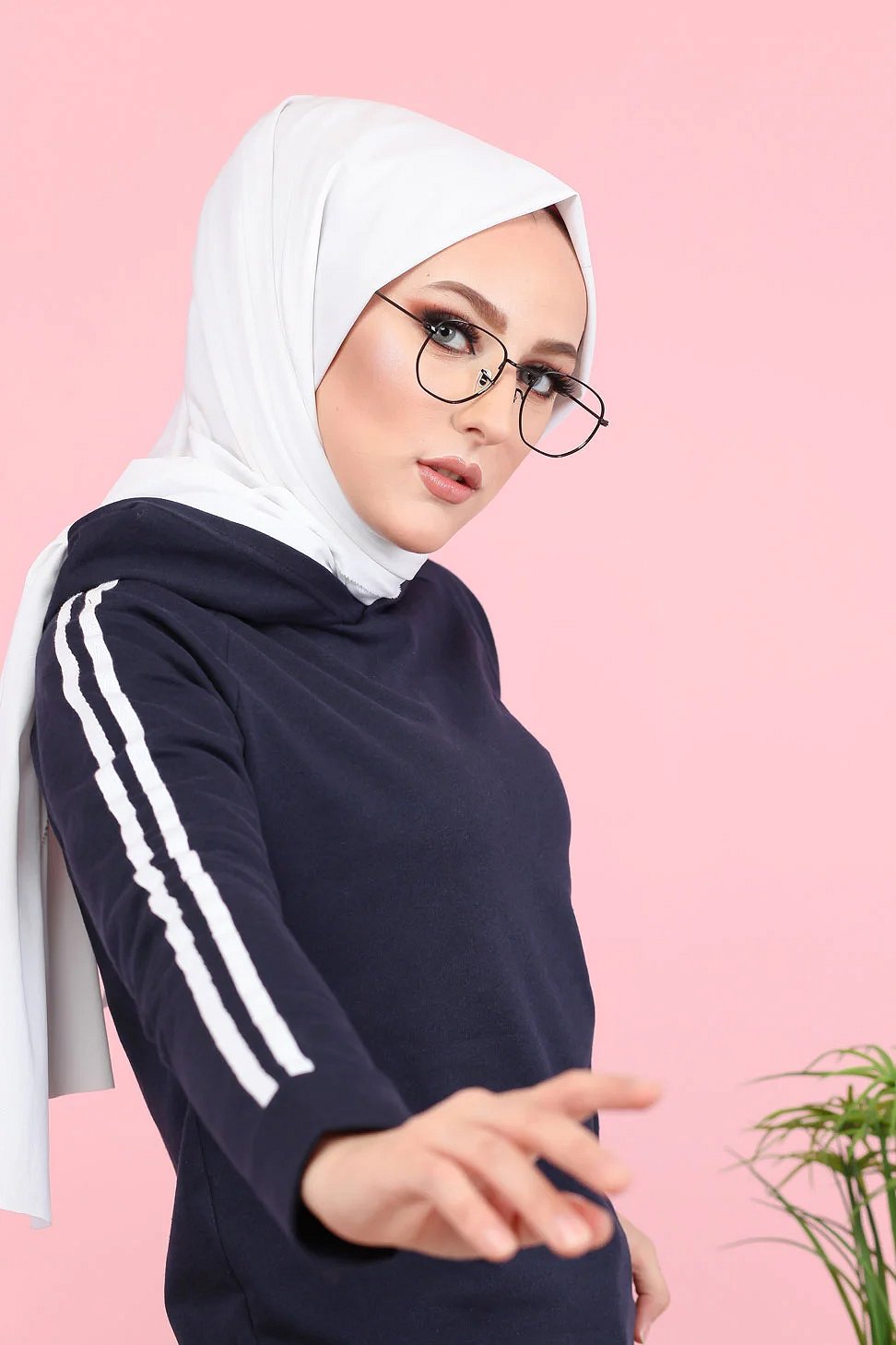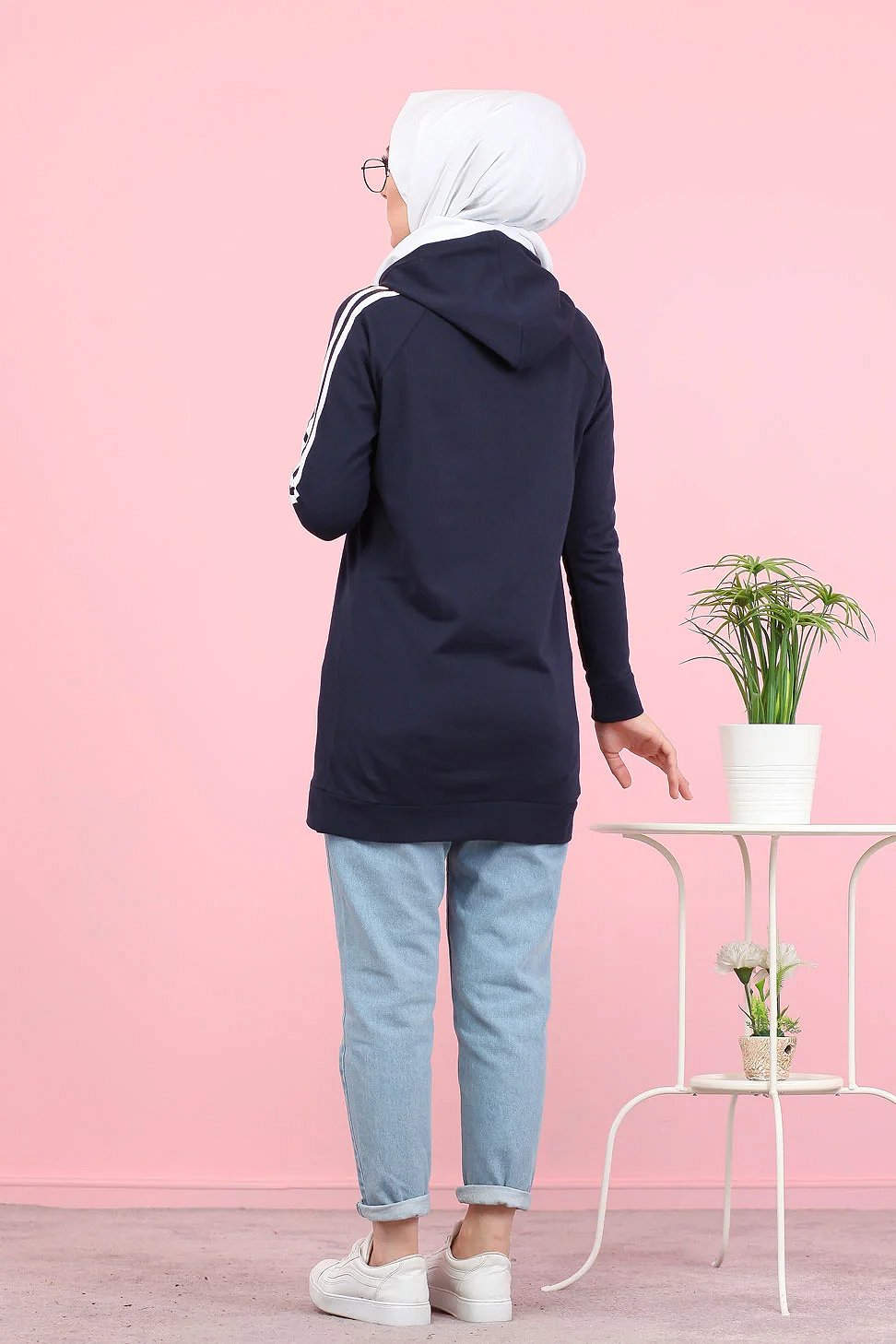 Tunique décontractée Sweat à capuche (Sweat-shirt femme voilée) - Couleur Bleue marine Vetement & Accessoire