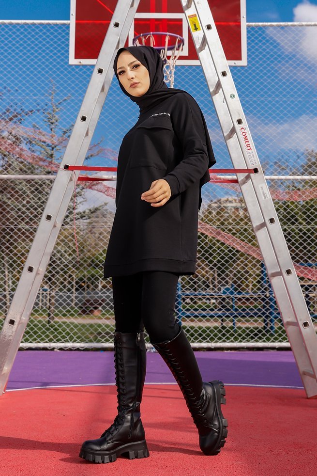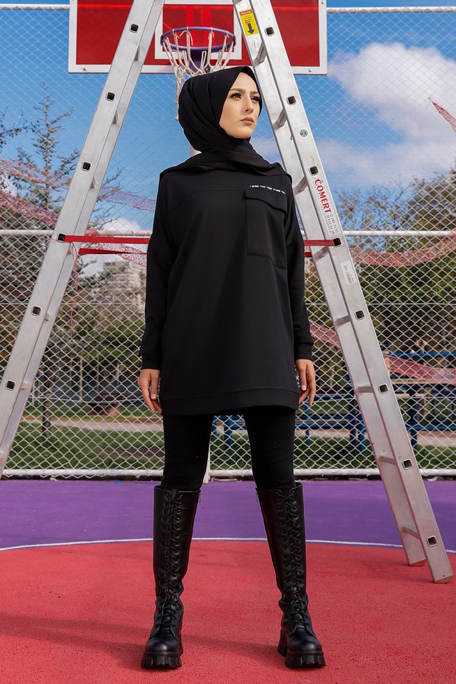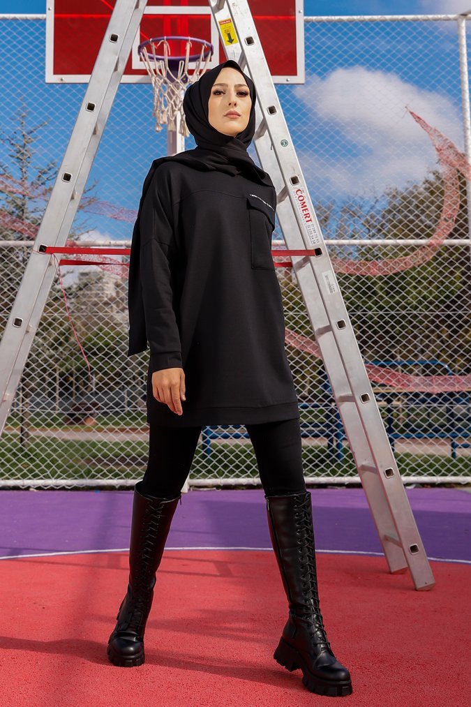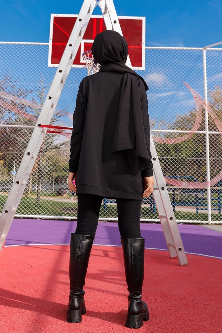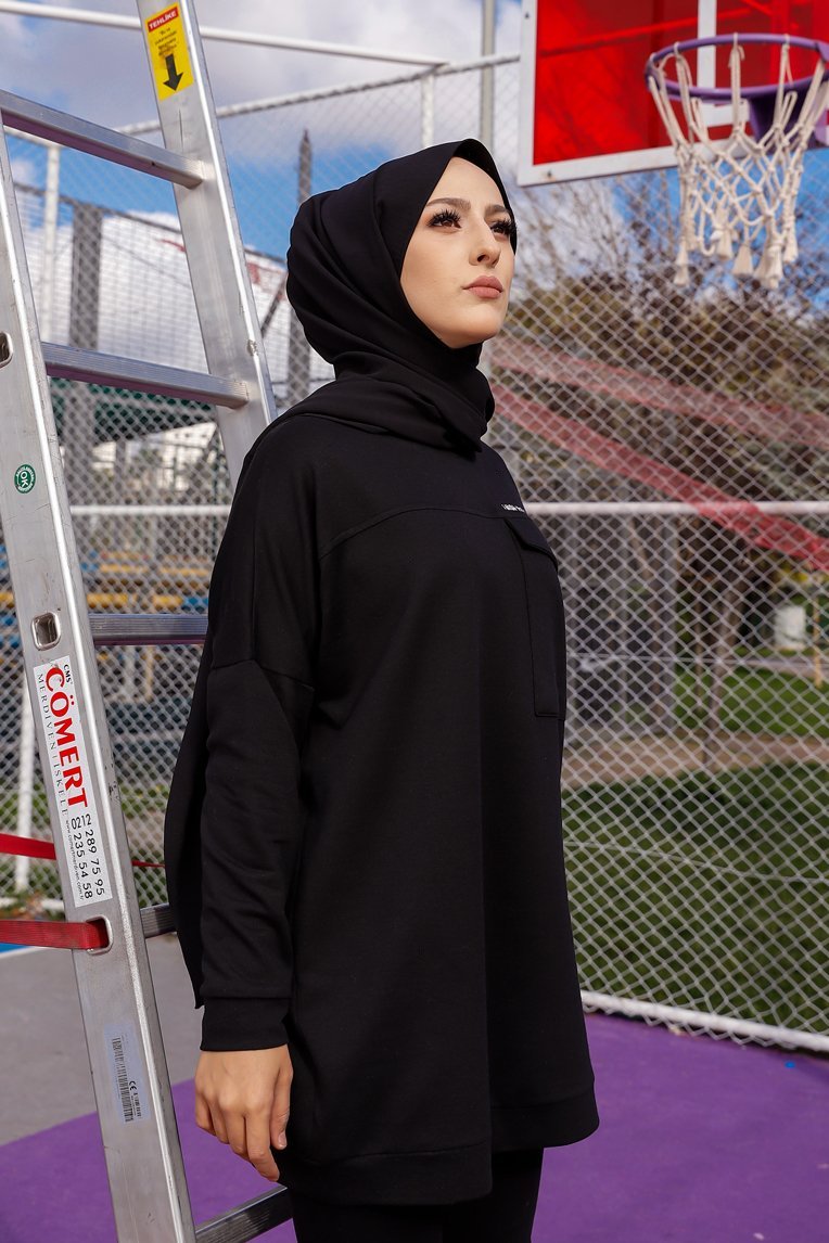 Tunique décontractée ample avec grande poche (Sweat femme Hijab) - Couleur noir Vetement & Accessoire