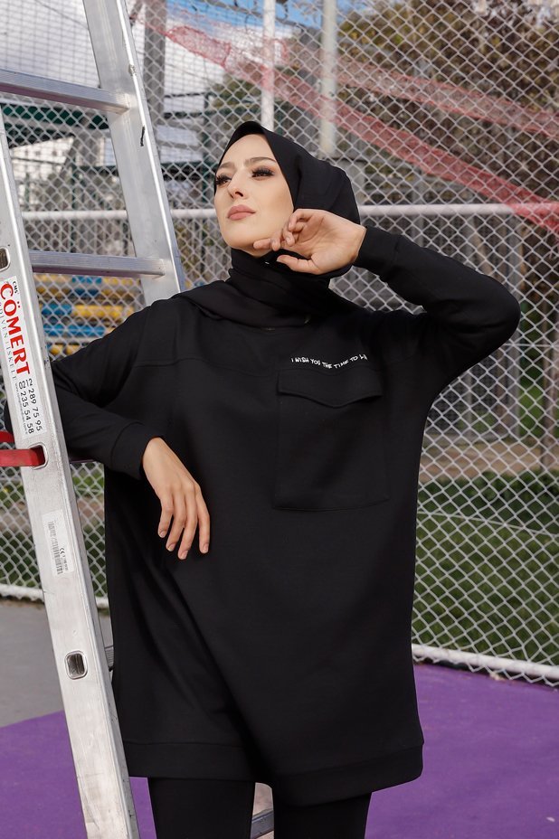 Tunique decontractee ample avec grande poche (Sweat femme Hijab) - Couleur noir