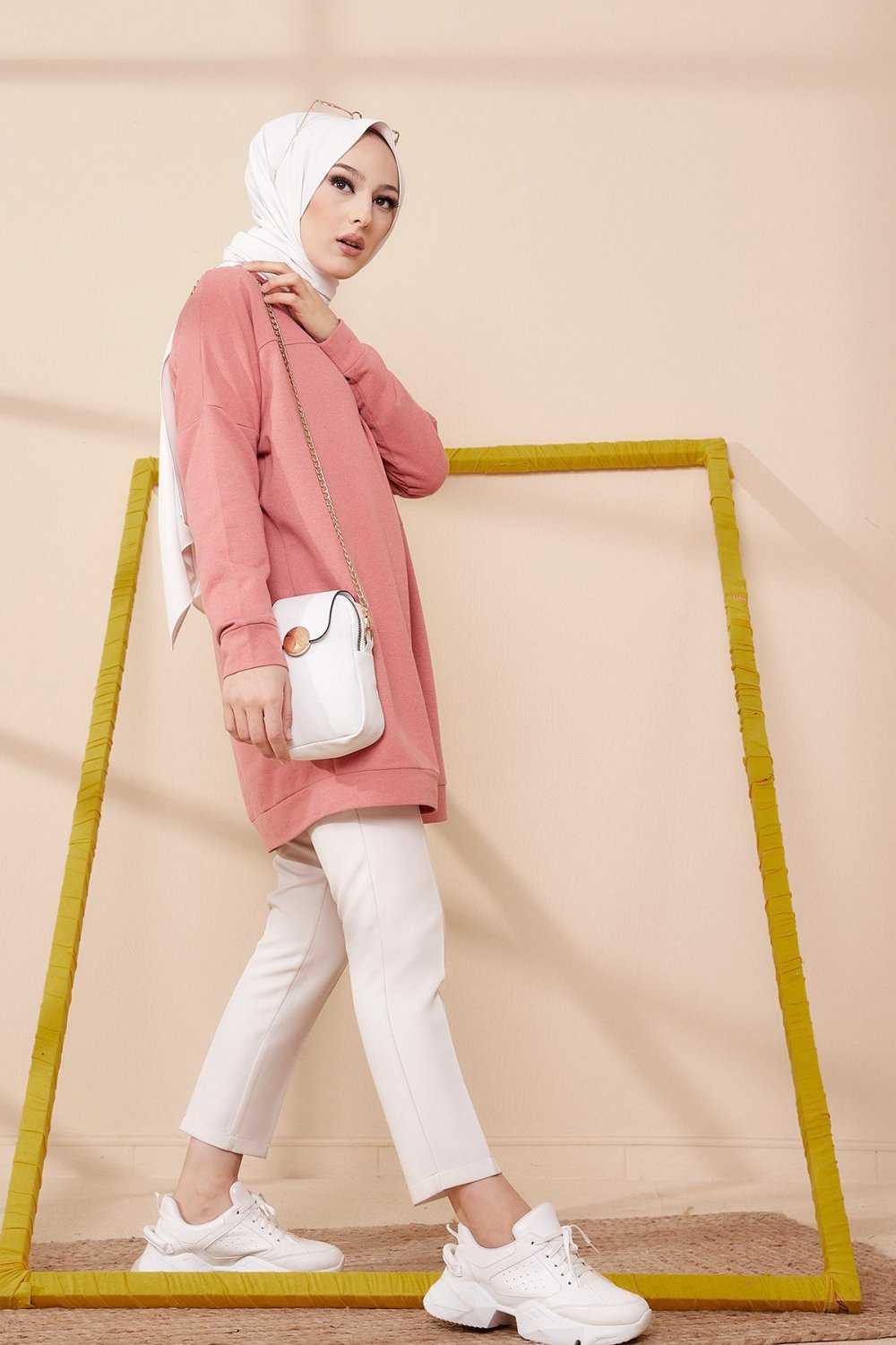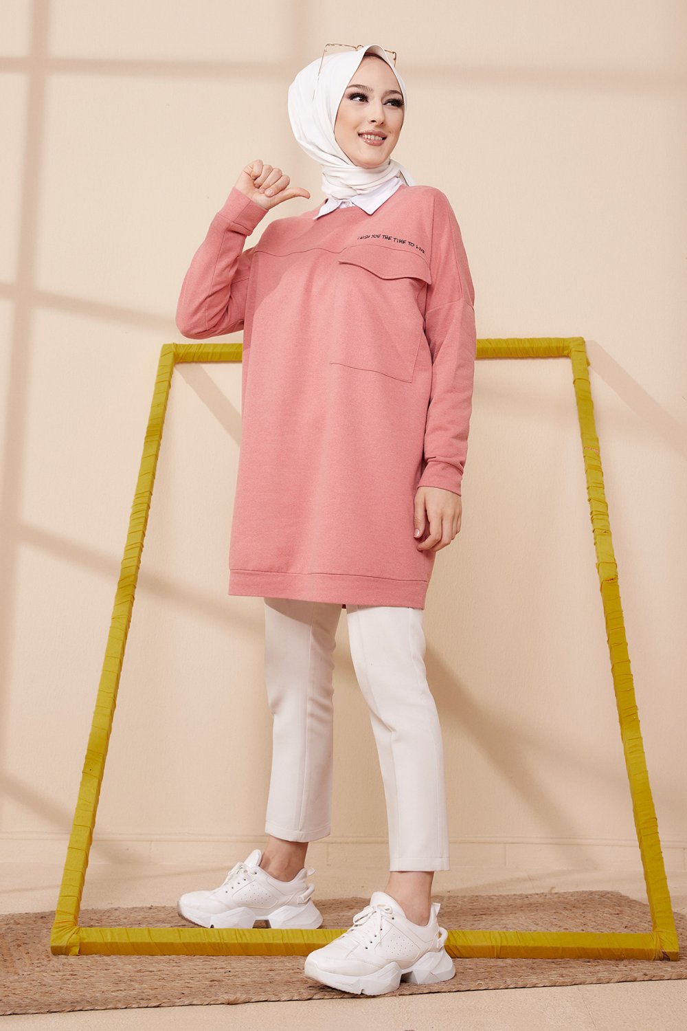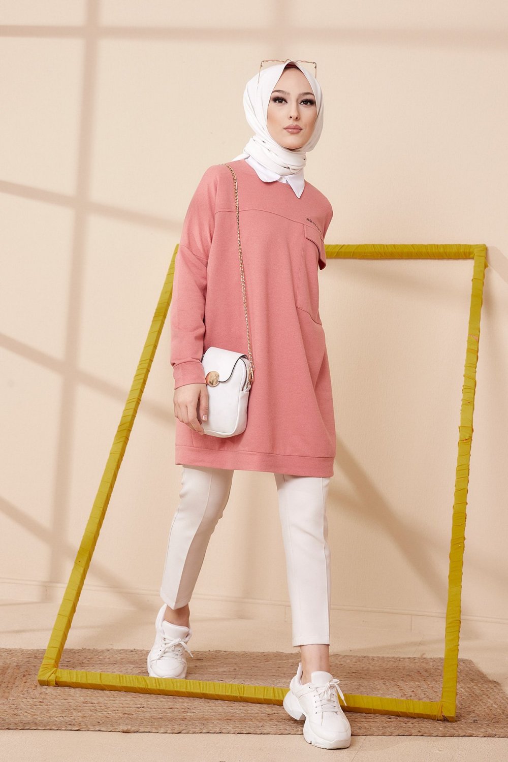 Tunique décontractée ample avec grande poche (Sweat femme Hijab) - Couleur rose Vetement & Accessoire
