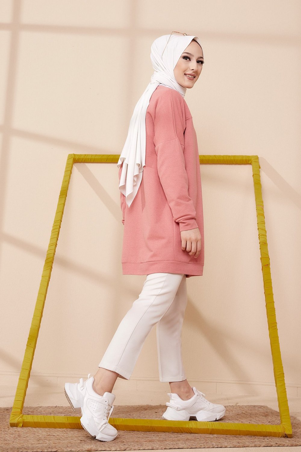 Tunique decontractee ample avec grande poche (Sweat femme Hijab) - Couleur rose