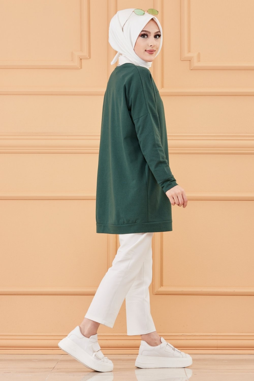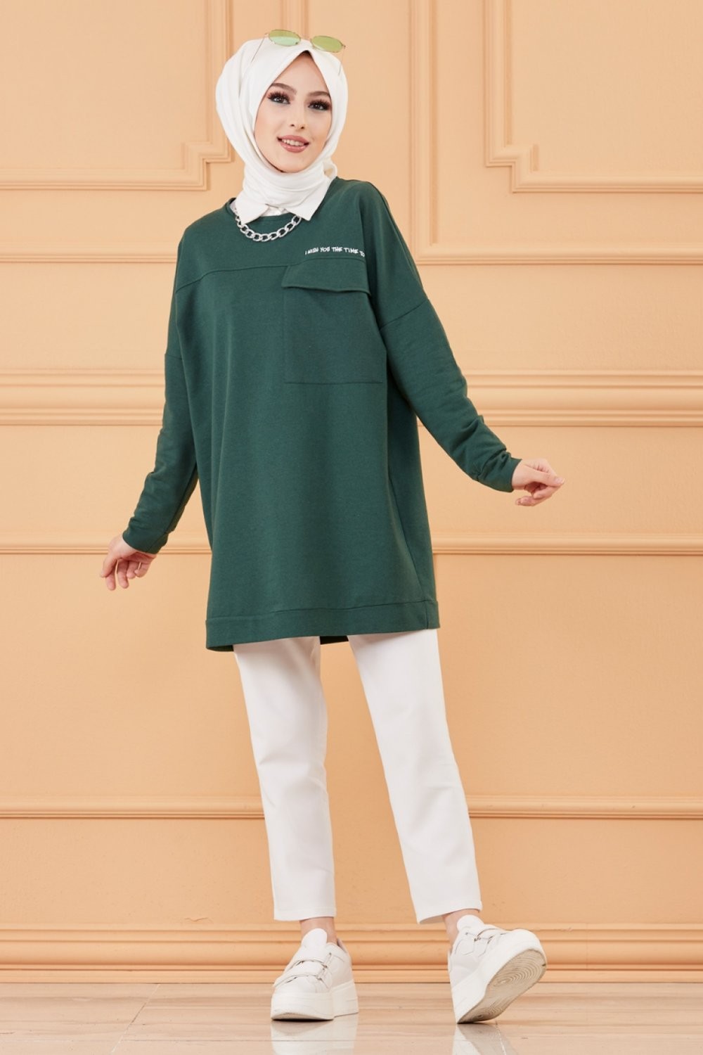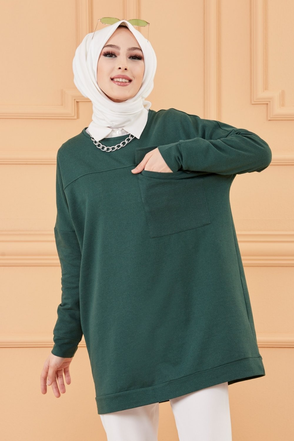 Tunique décontractée ample avec grande poche (Sweat femme Hijab) - Couleur vert émeraude Vetement & Accessoire